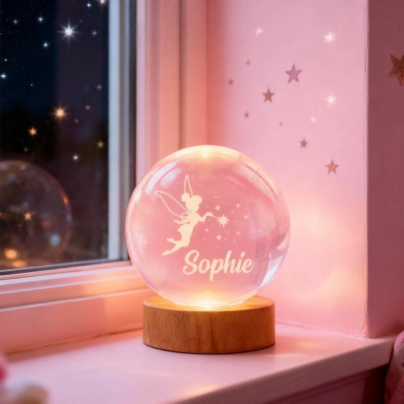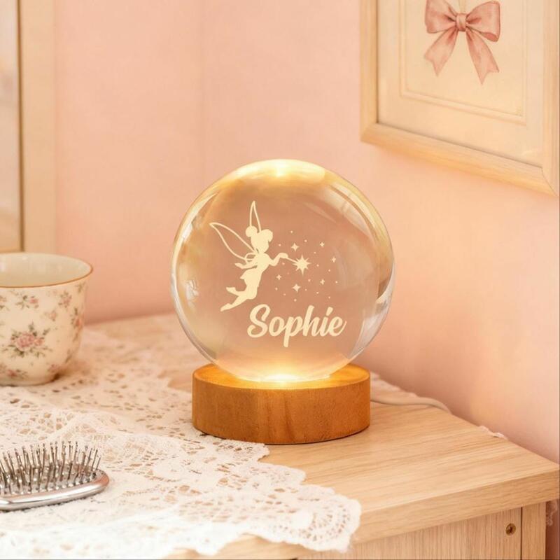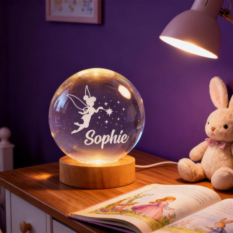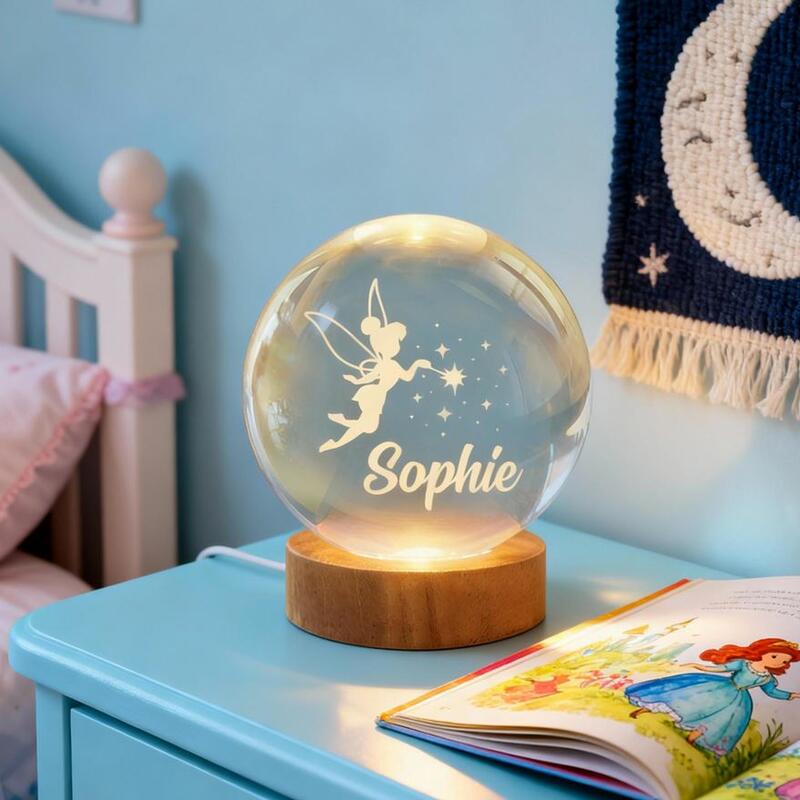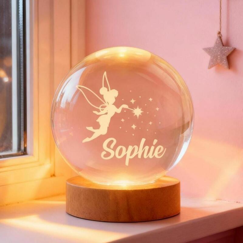 Anpassad kristallkula-lampa med elfdesign Romantisk födelsedagspresent till dottern