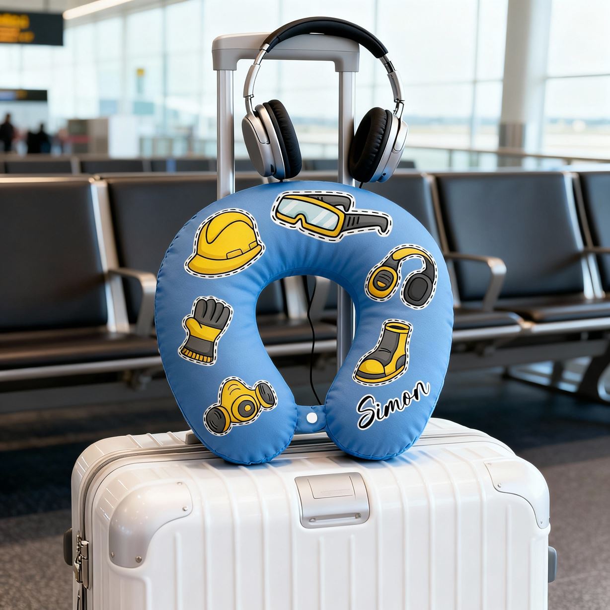 Anpassad U-formad kudde med namnteckning Symbolmönster Bärbar kudde Semesterpresent till honom
