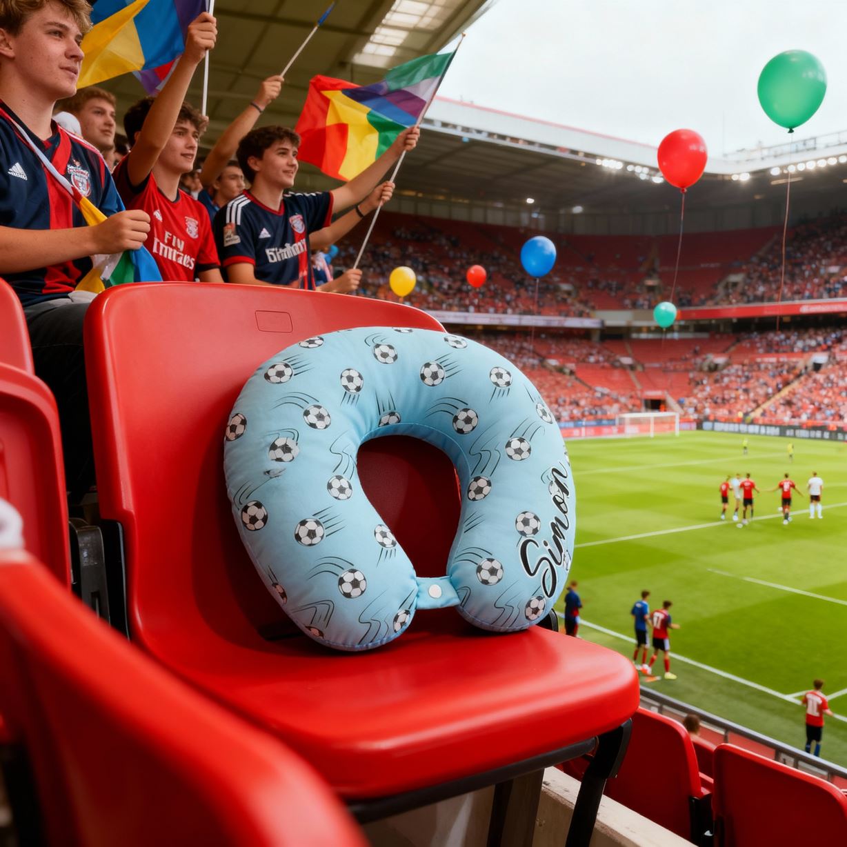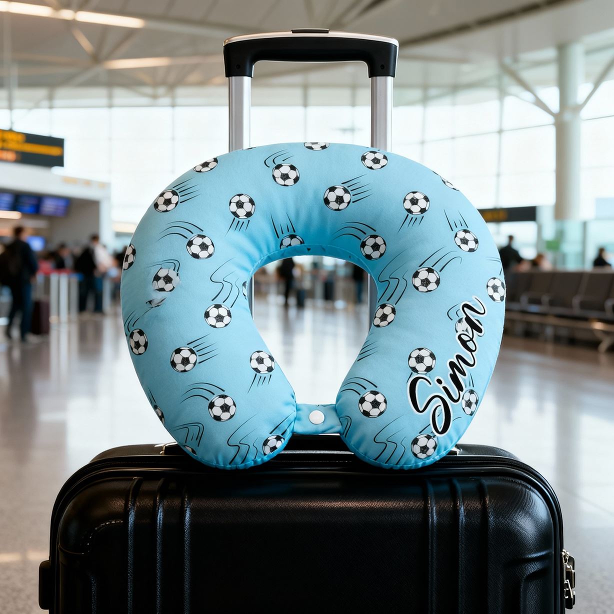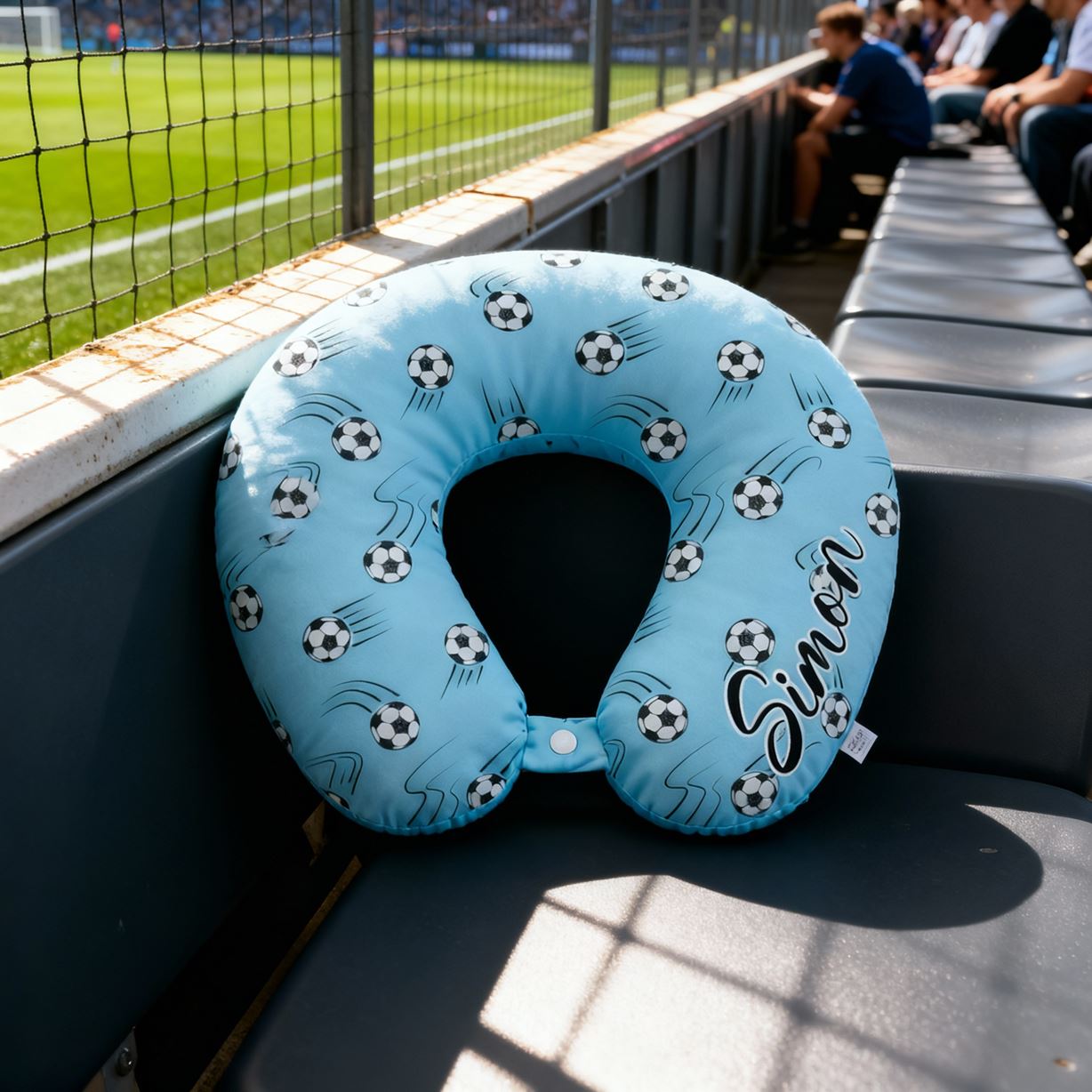 Anpassad U-formad kudde med fotbollsmotiv i blått bärbar resekudde för barn