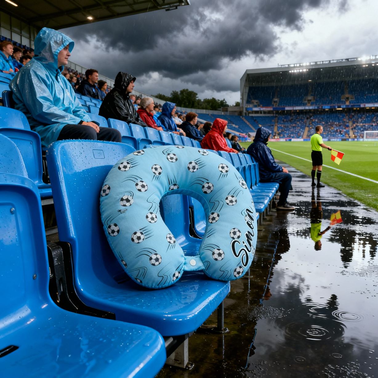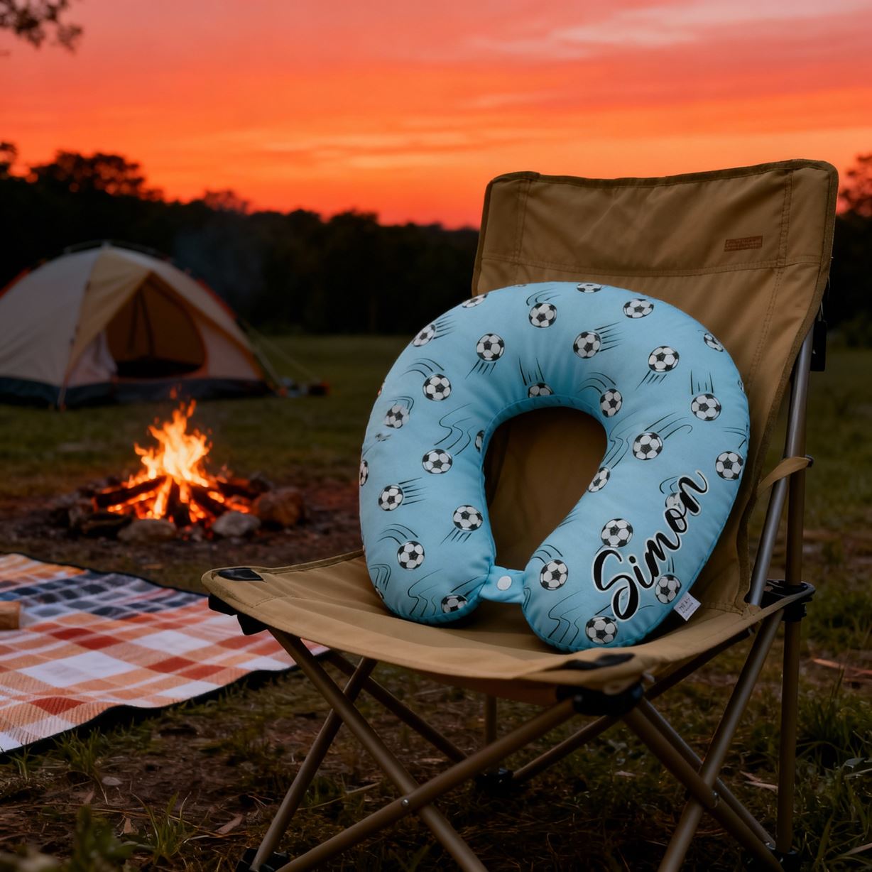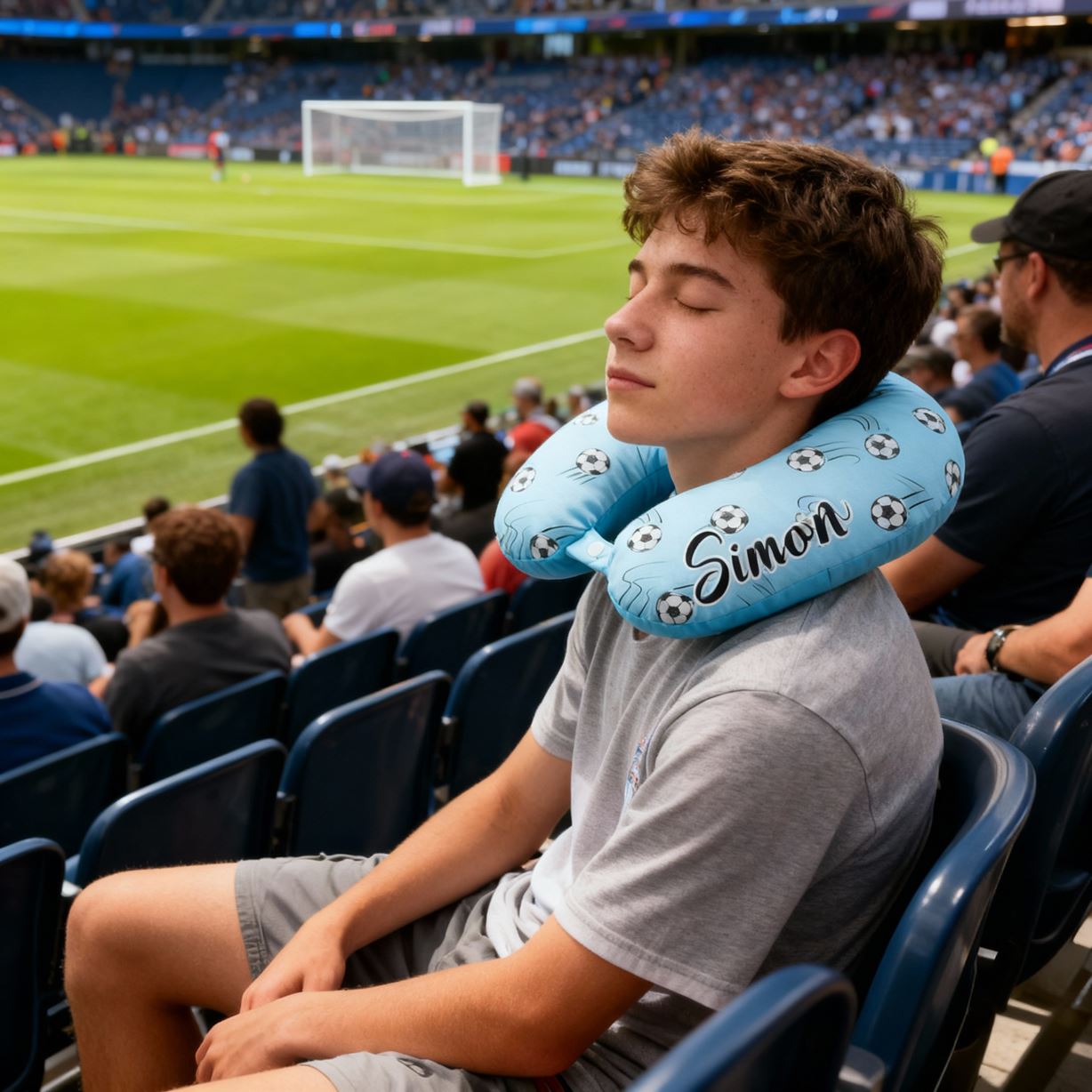 Anpassad U-formad kudde med fotbollsmotiv i blått bärbar resekudde för barn