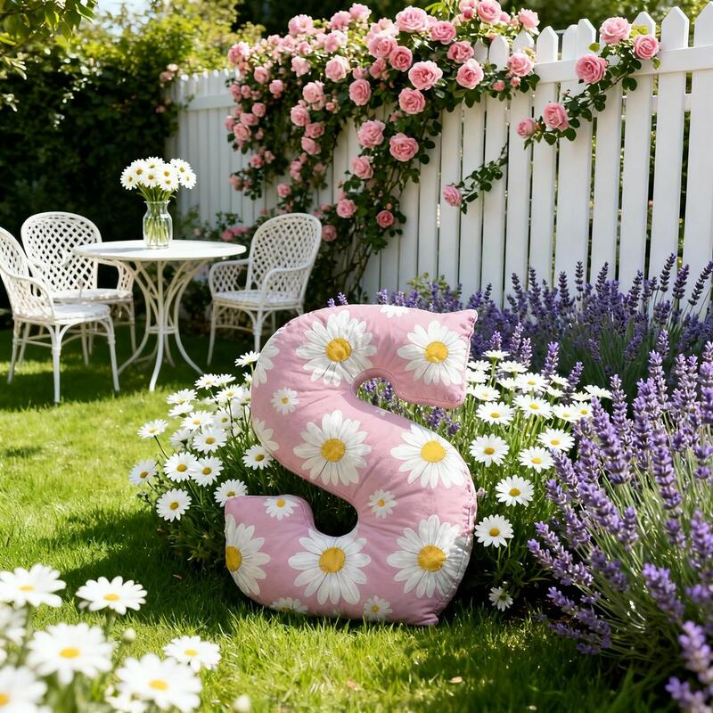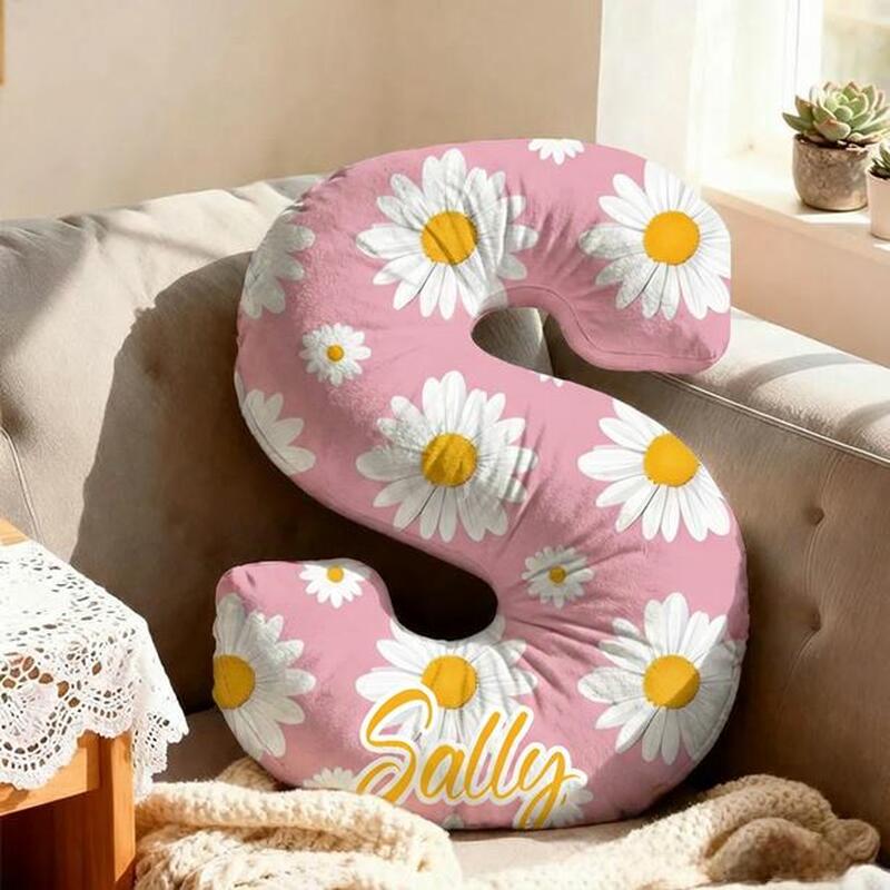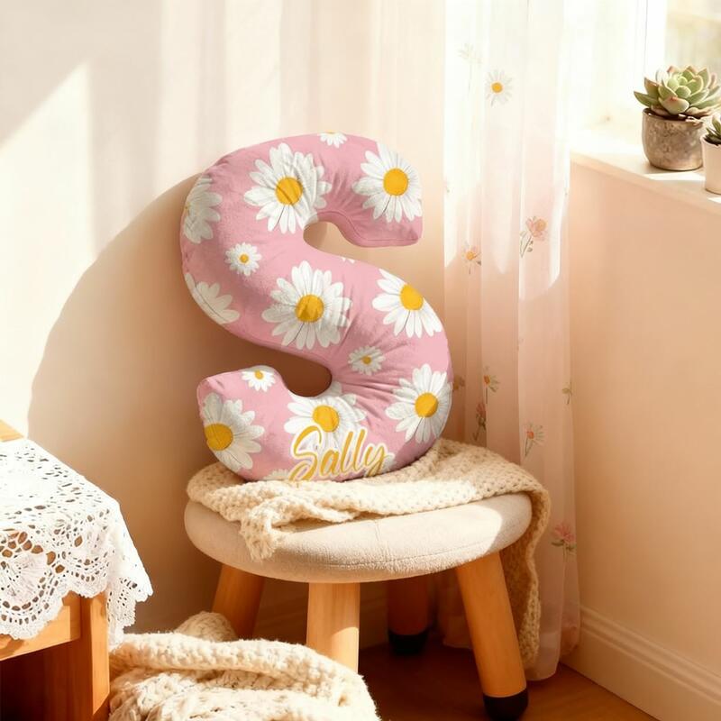 Personalized 3D Letter Pillow Daisy Pink Pillow Children's Room Decoration for Kids