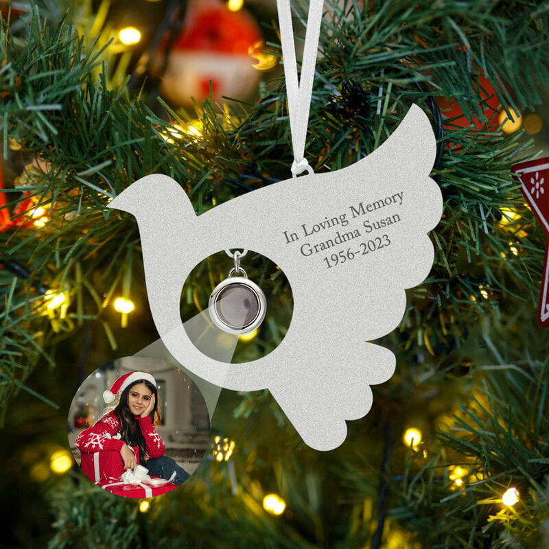 Personlig fågeljulprojektion hängande prydnadsföremål Anpassade fotojubileumspresenter till nära och kära