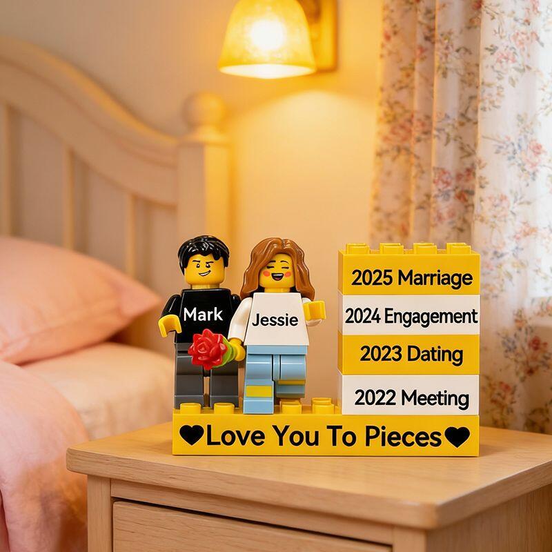 Personliga minifigurer i byggklossar med specialtillverkade speciella datum Värmande present till par