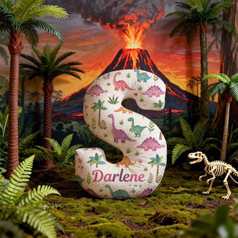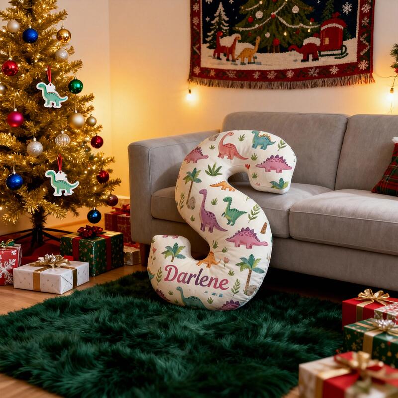 Personliga julklappar till barn kuddar med bokstäver i dinosauriemotiv