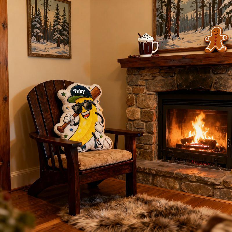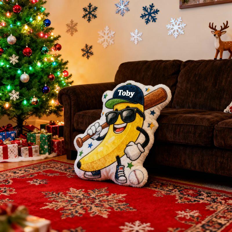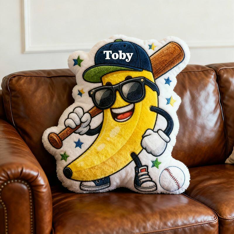 Personlig kudde i form av en tecknad figur med banan och basebollspelare cool present till barn