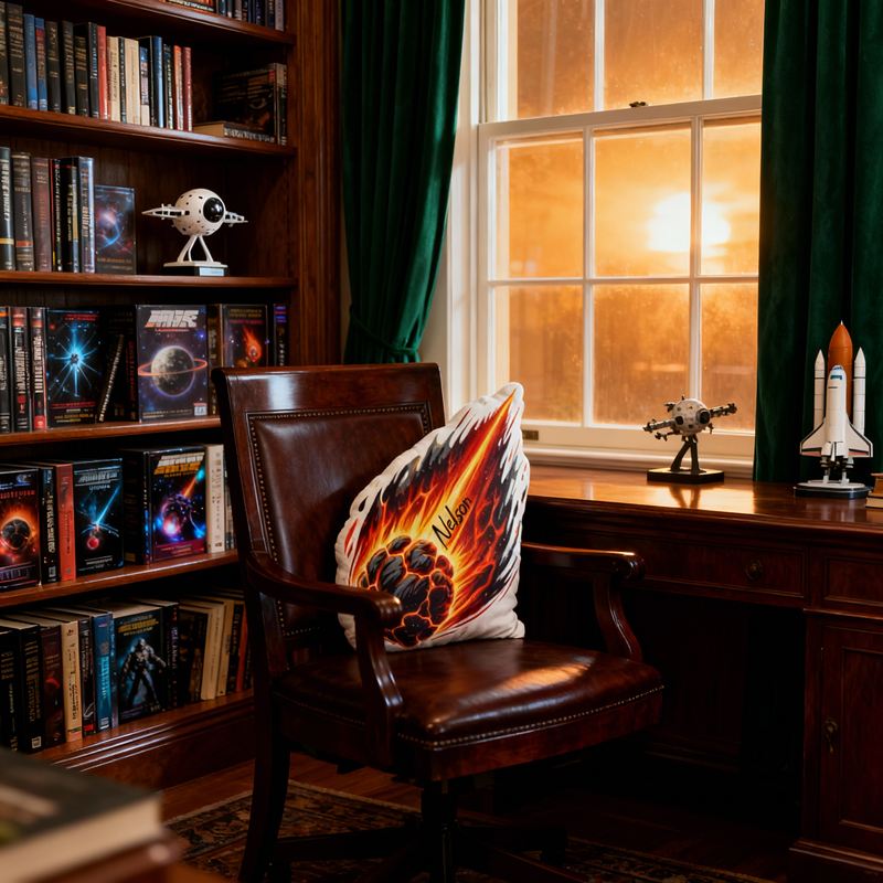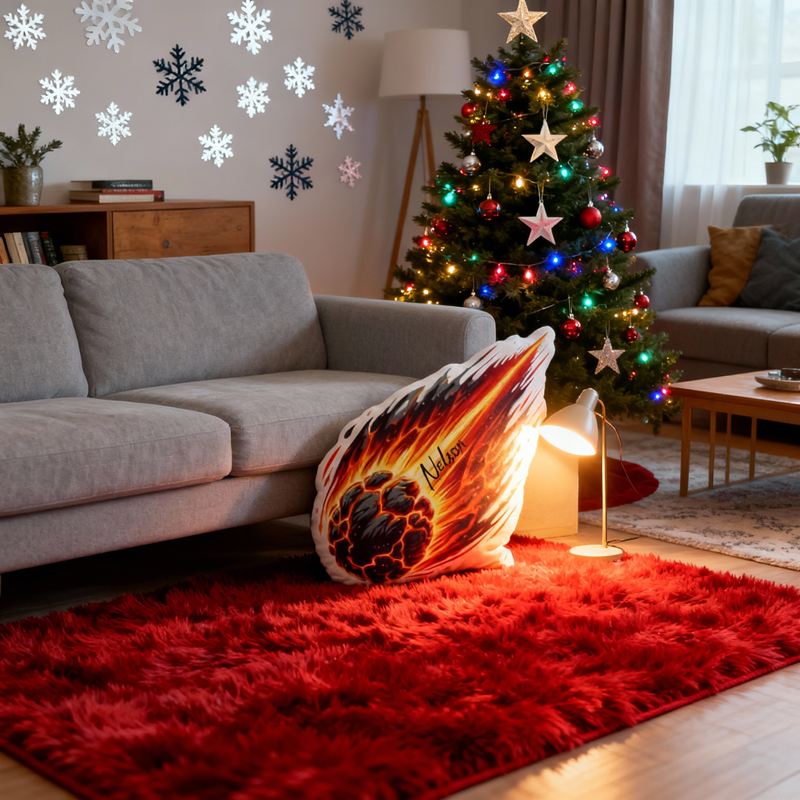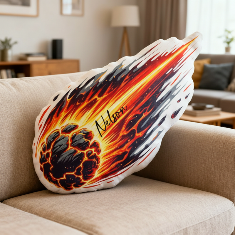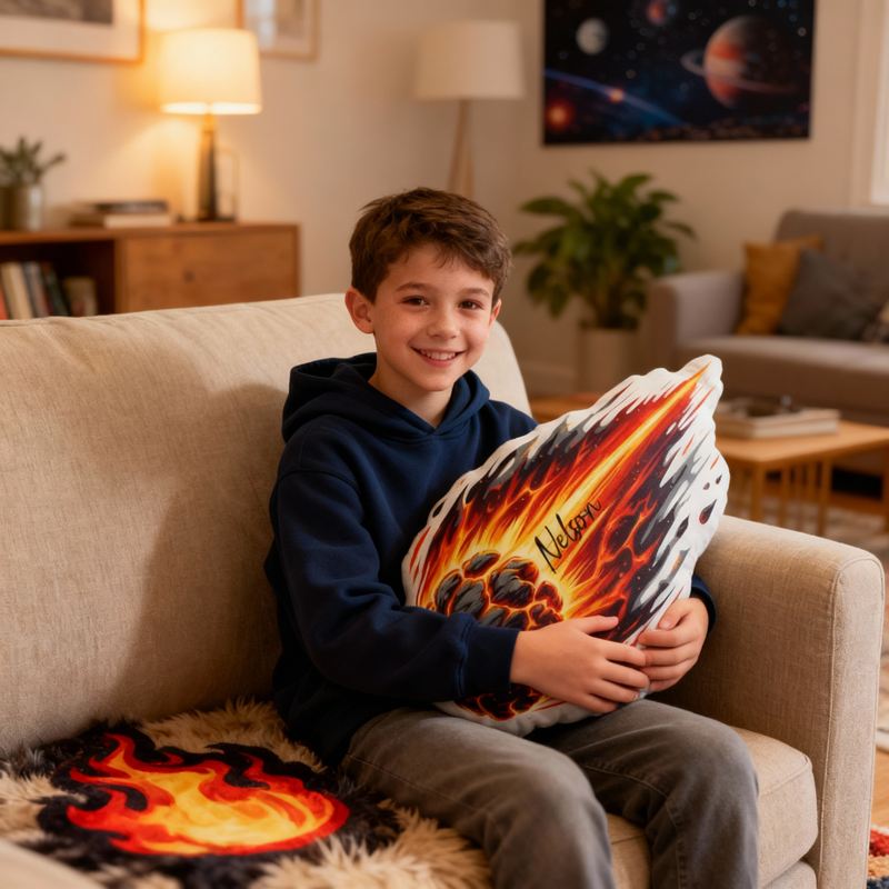 Personlig kudde i form av en tecknad figur med meteoritslagsmönster Rolig present till barn