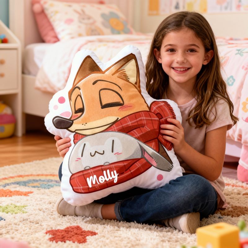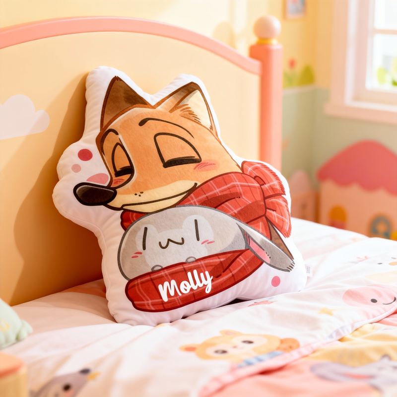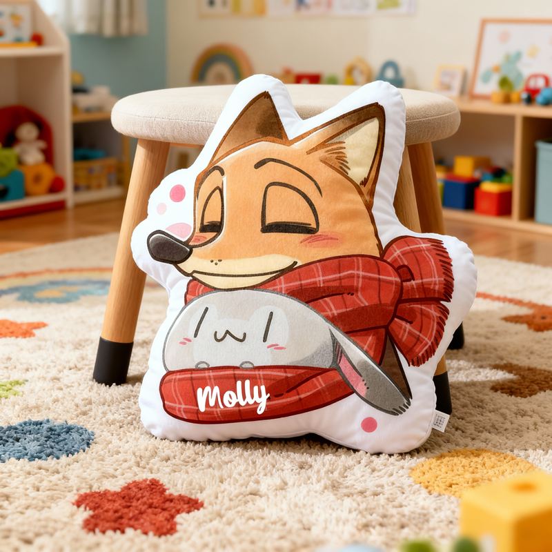 Personlig kudde i form av en tecknad figur med räv och söt kanindesign attraktiv present till barn