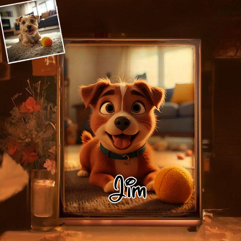 Personliggjord cartoon-stil bild-spegel-lampa Med anpassat namn Sött gåva för husdjurälskare