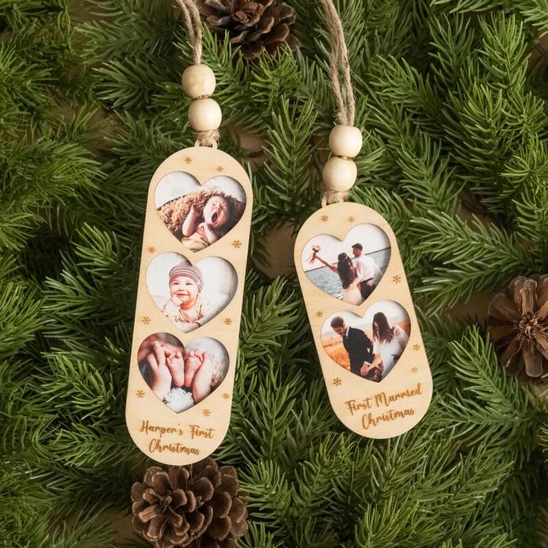 Personliga juldekorationer anpassade hjärtformade fotogåvor till jul