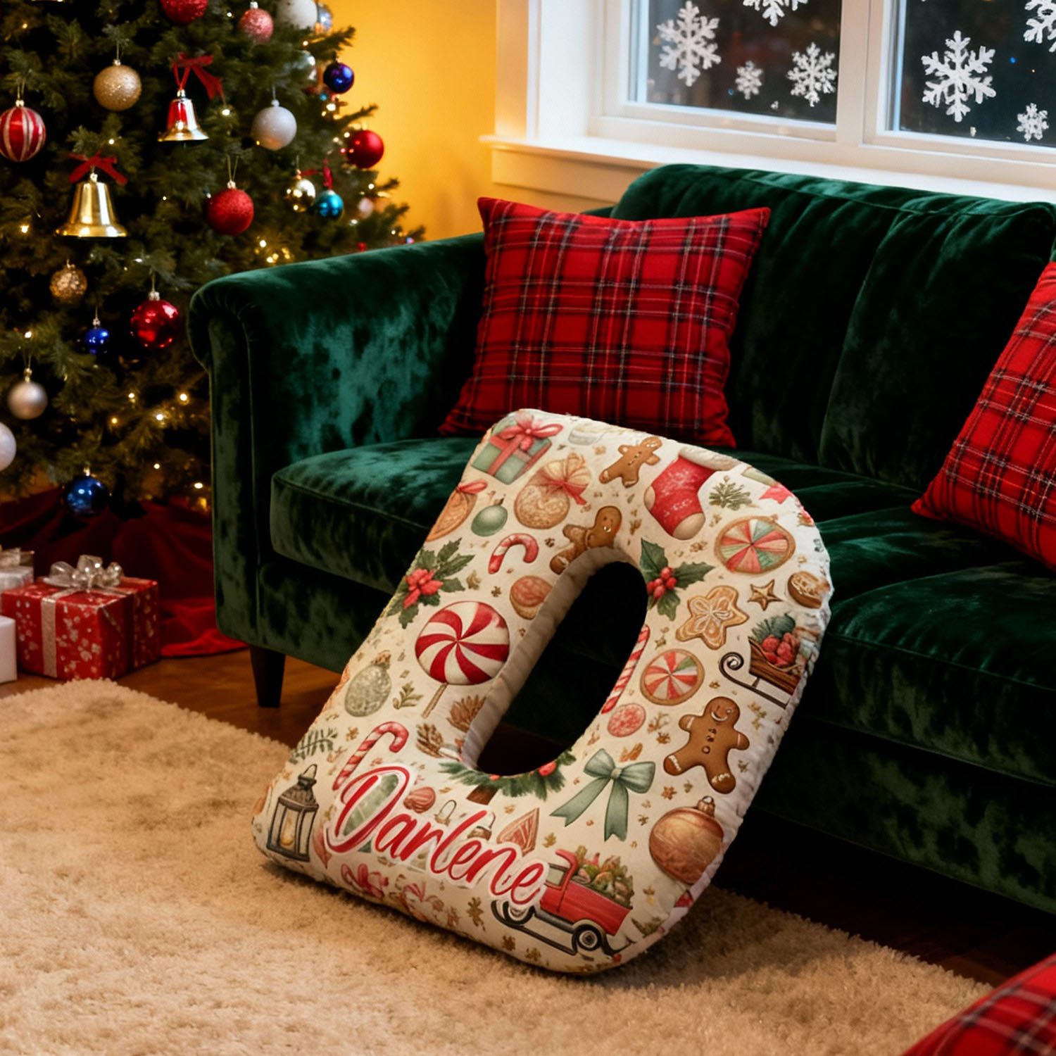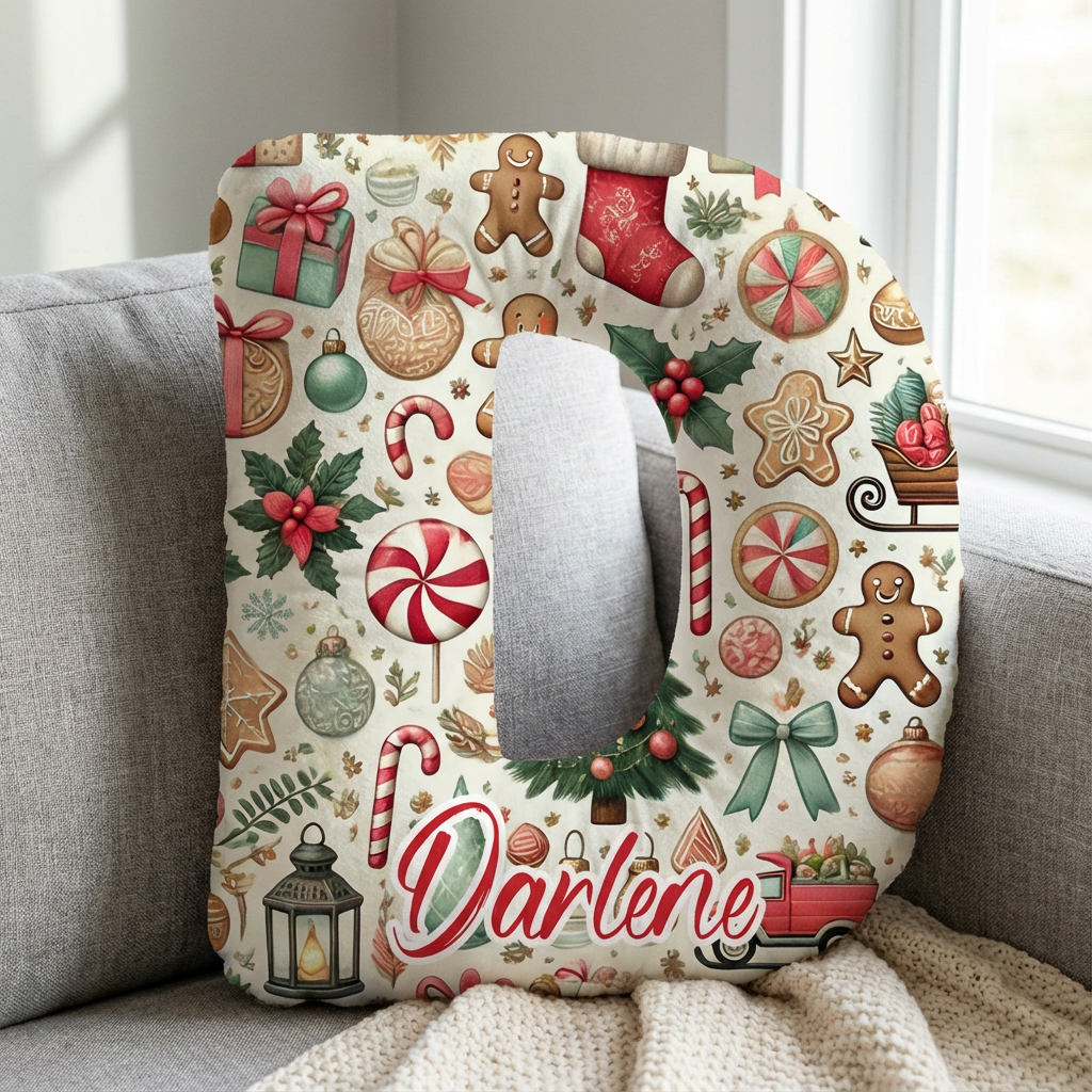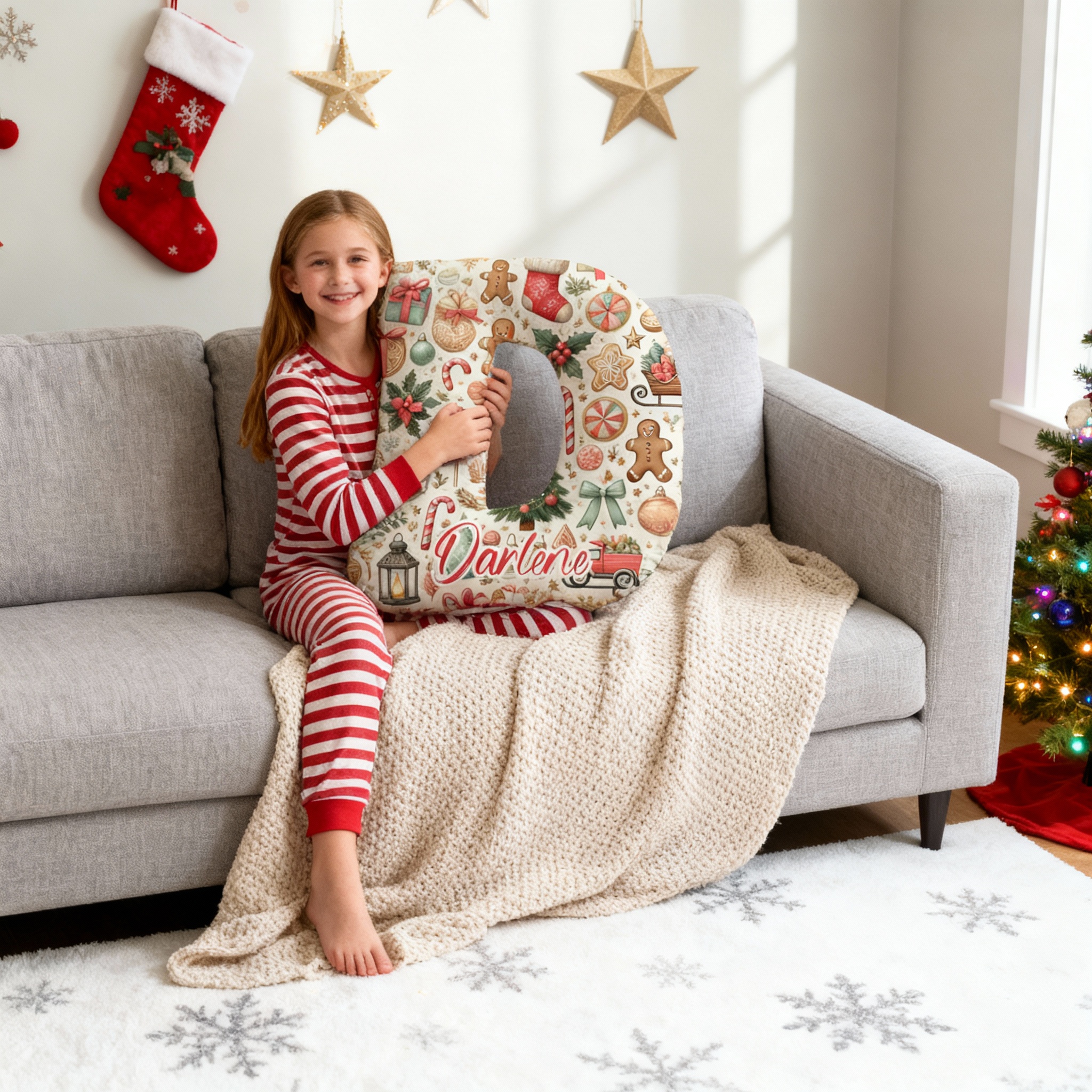 Personliga julklappar till flickor kuddar med bokstäver i julmotiv
