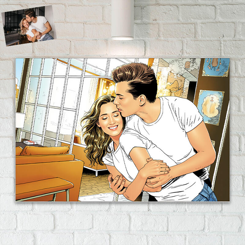 Personlig Comic Style Photo Canvas Wall Art Rolig gåva till din kärlek