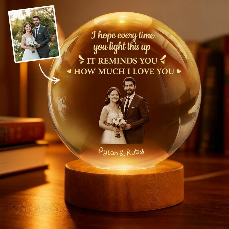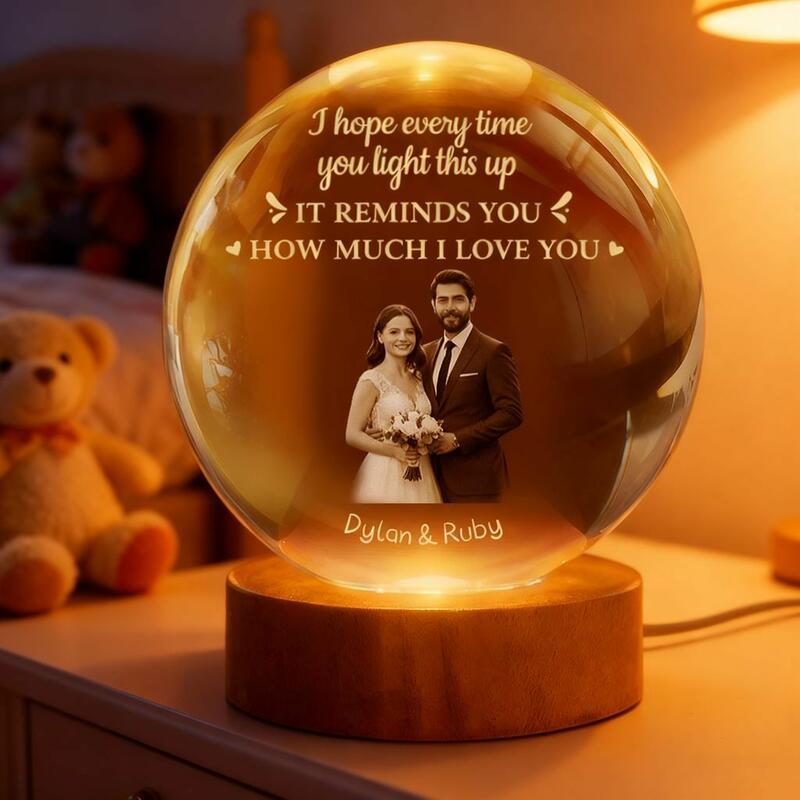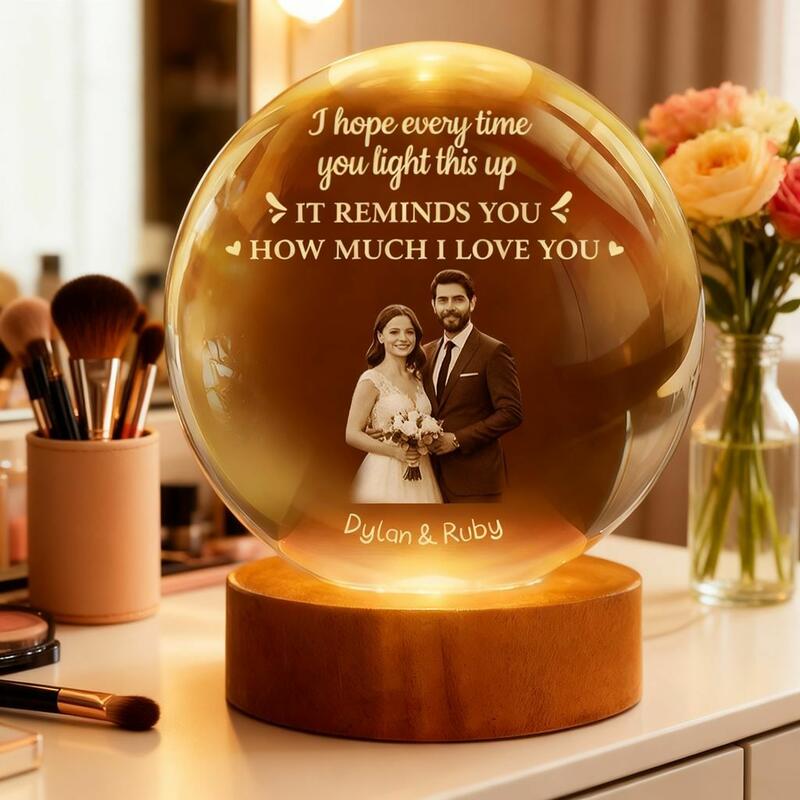 Personlig kristallglobslampa med eget foto nattlampa present till par på alla hjärtans dag
