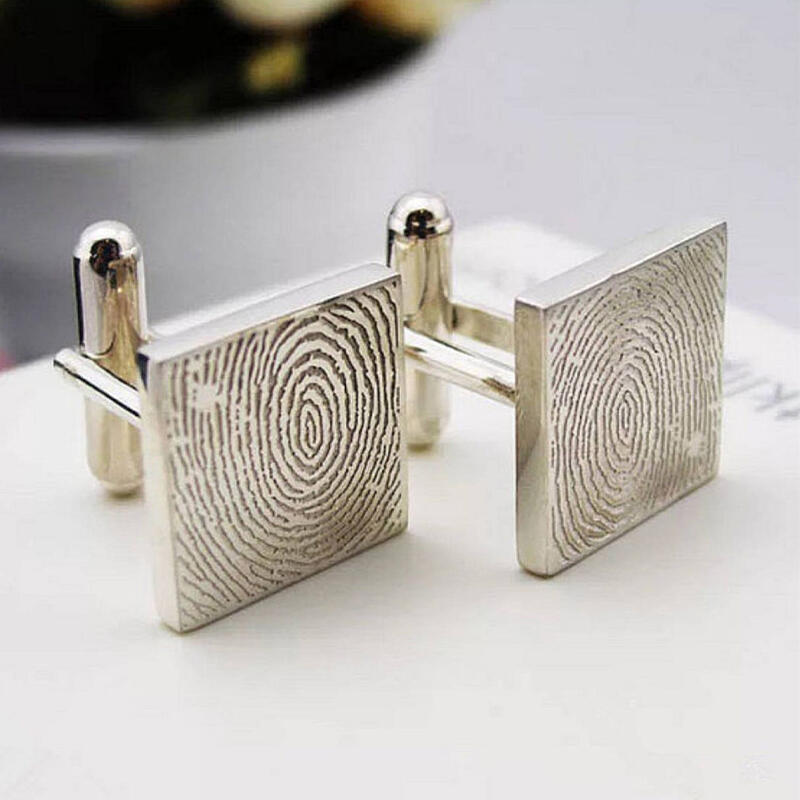 Personlig fyrkantig manschettknapp med fingeravtrycksgravyr Unik design Meningsfull gåva till honom