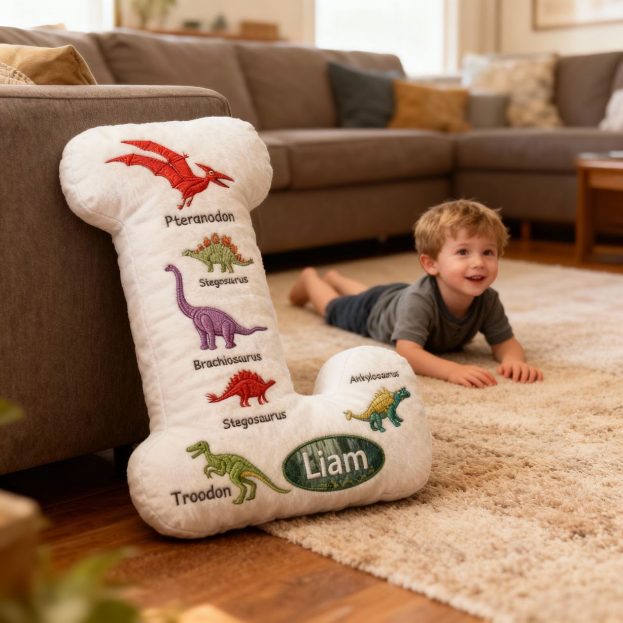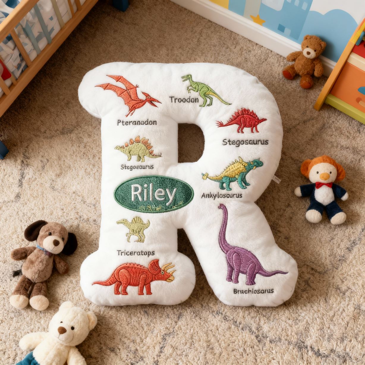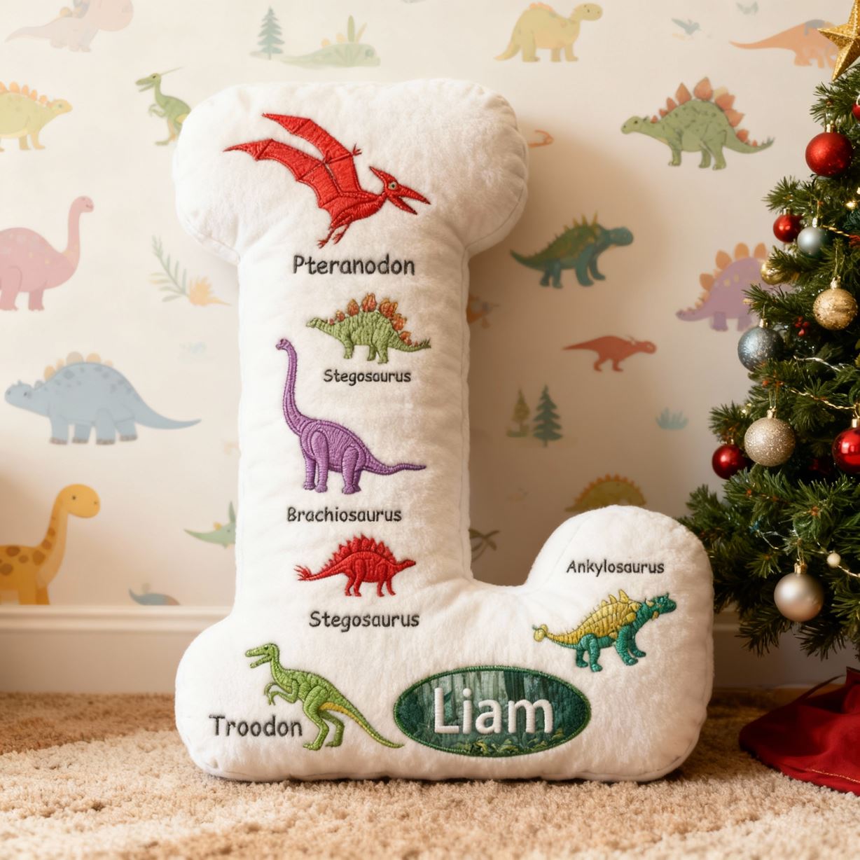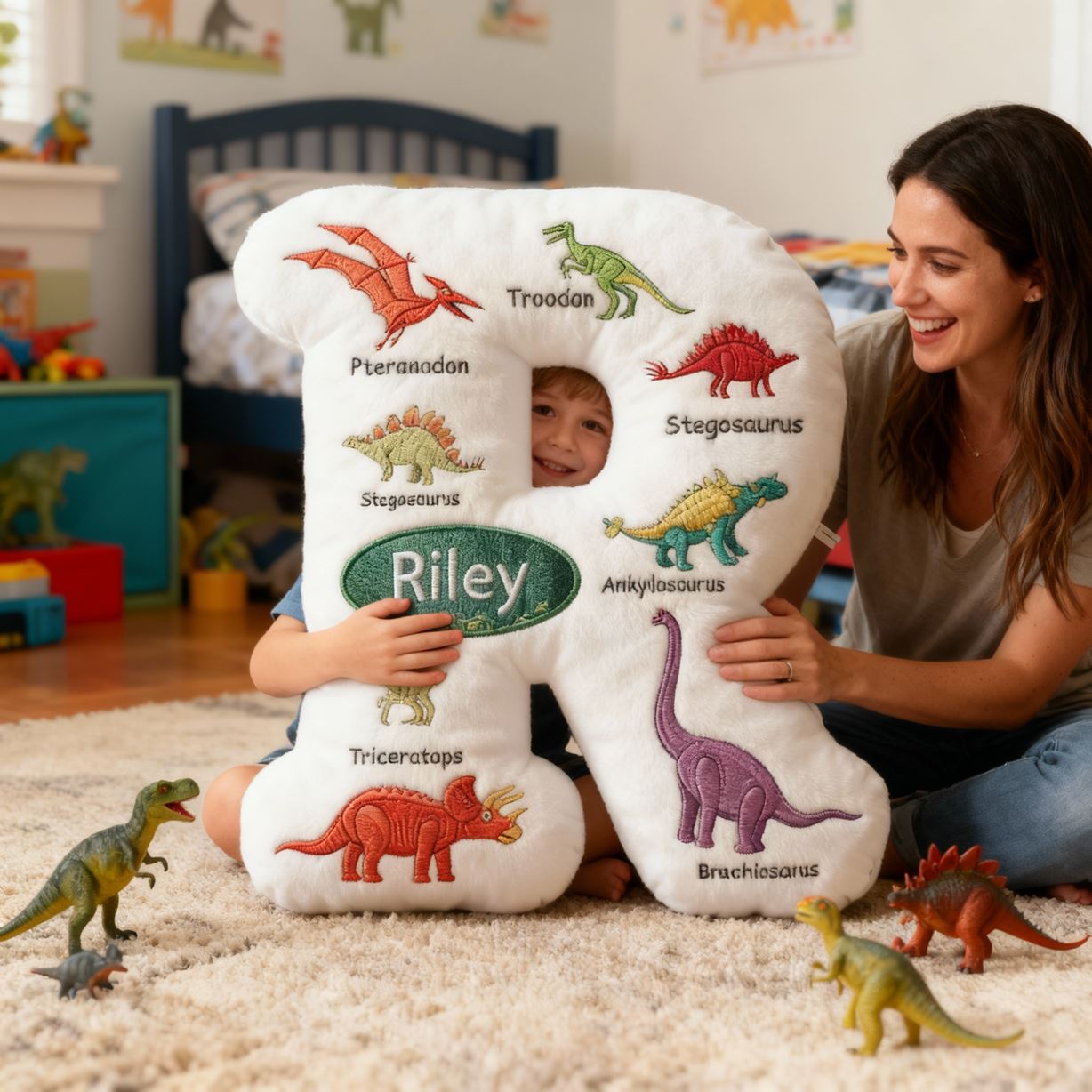 Personalized Dinosaur World Initials with Name 3D Fabric Pillow Birthday Gifts for Kids