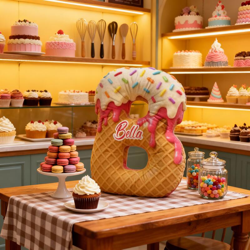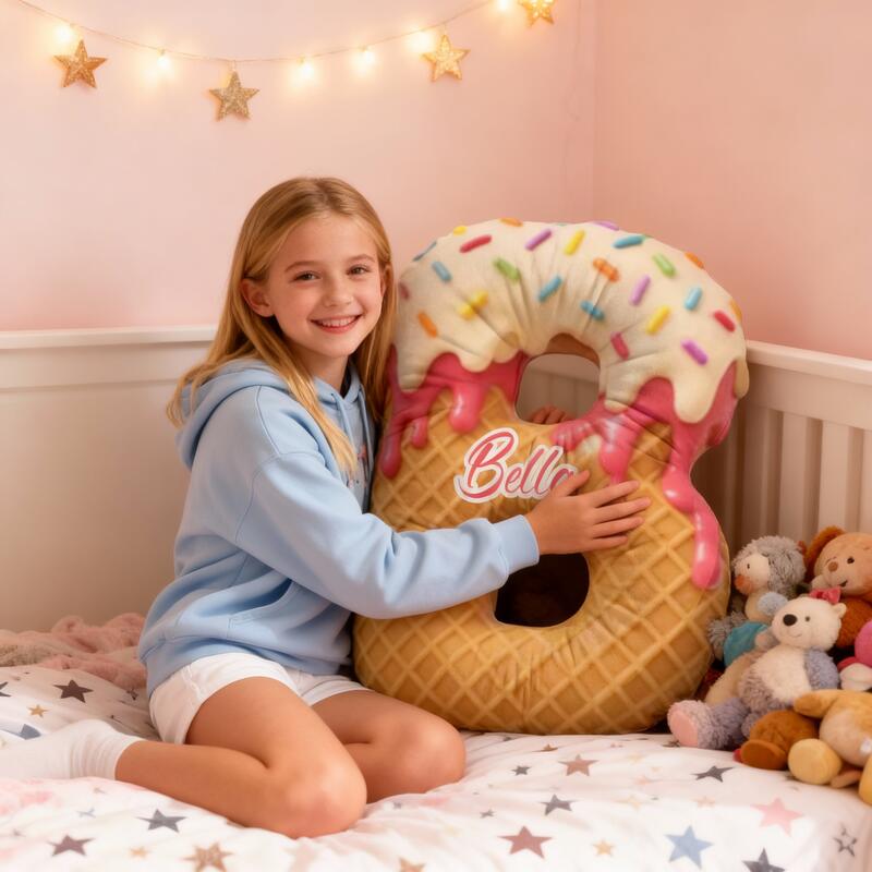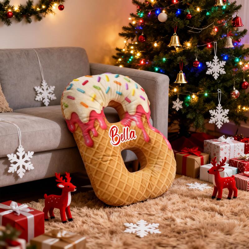 Personliga julklappar till flickor söta kuddar med bokstäver i donutmotiv