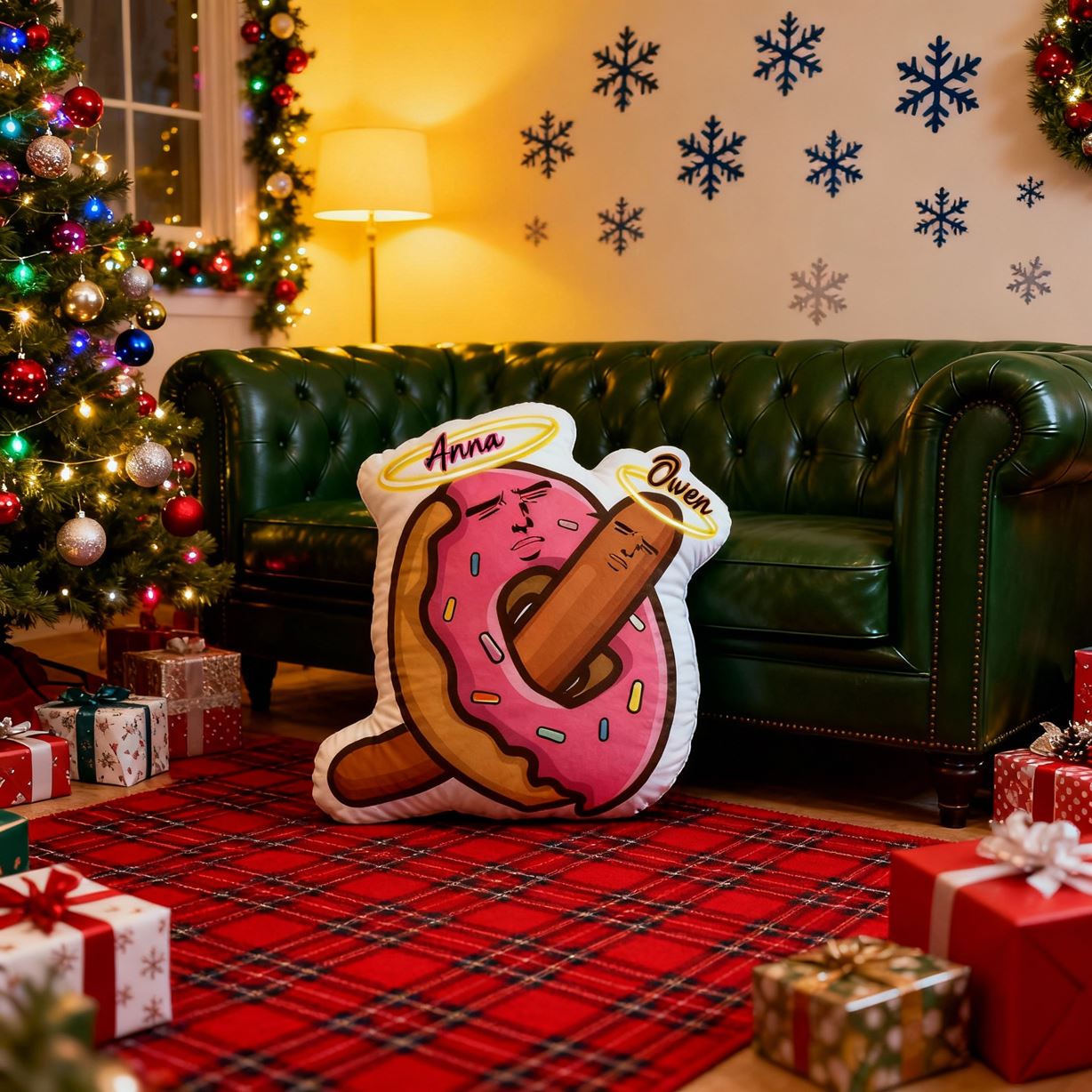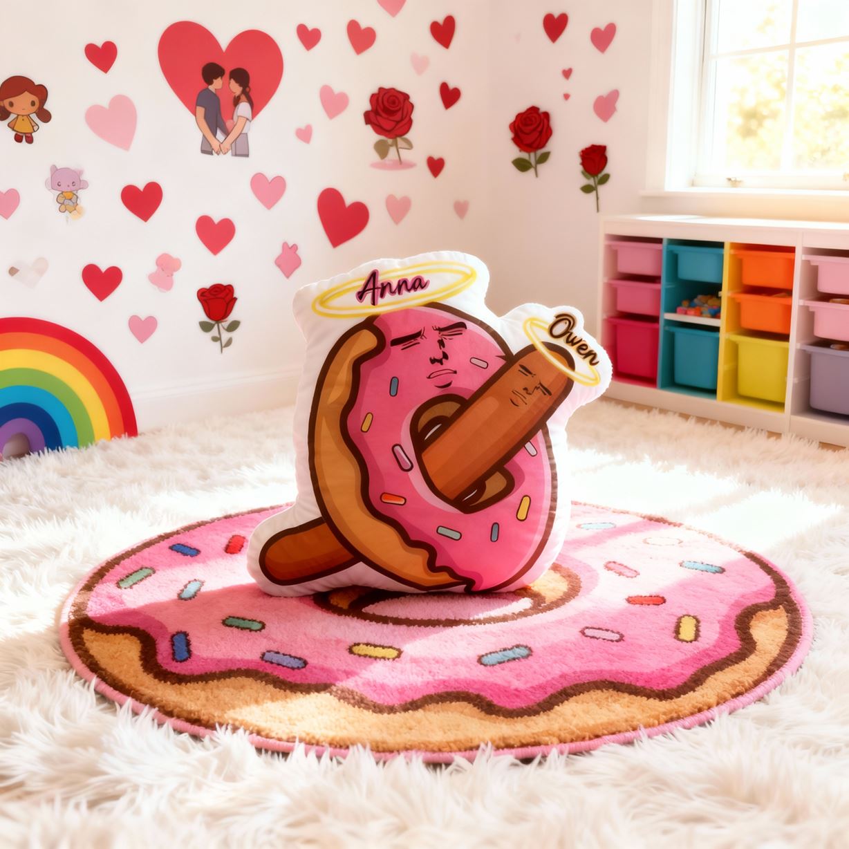 Personlig donutformad plyschkudde med tecknad tryck en rolig skämtkudde för par