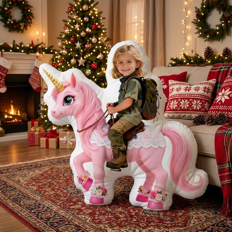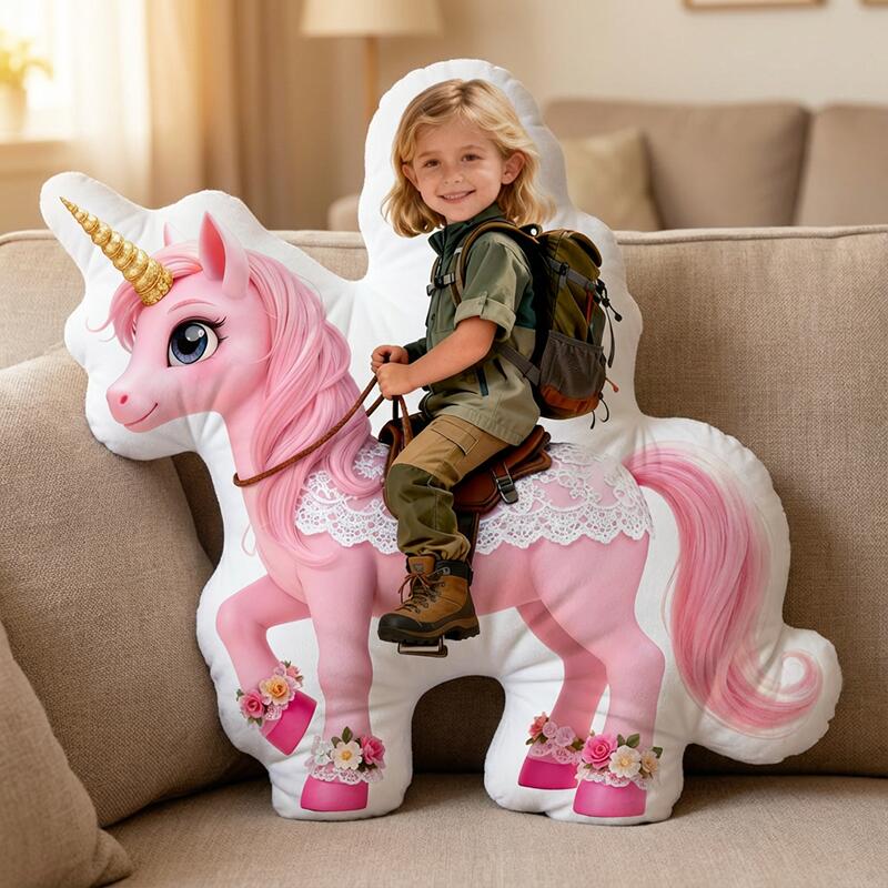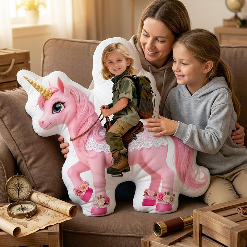 Personalized Face Portrait Pillow with Unicorn Pattern Beautiful Present for Girls