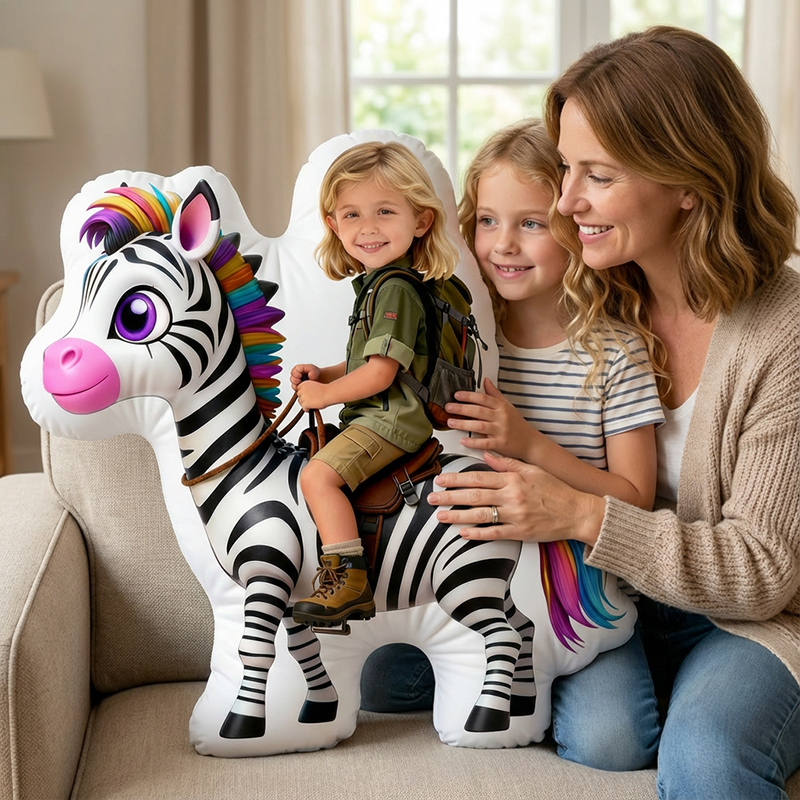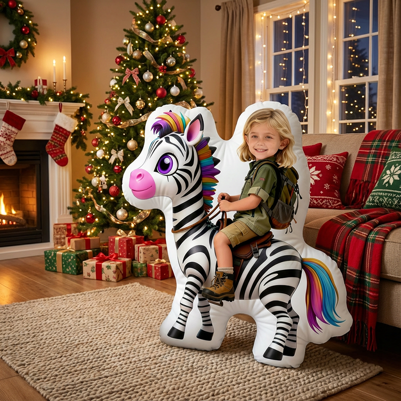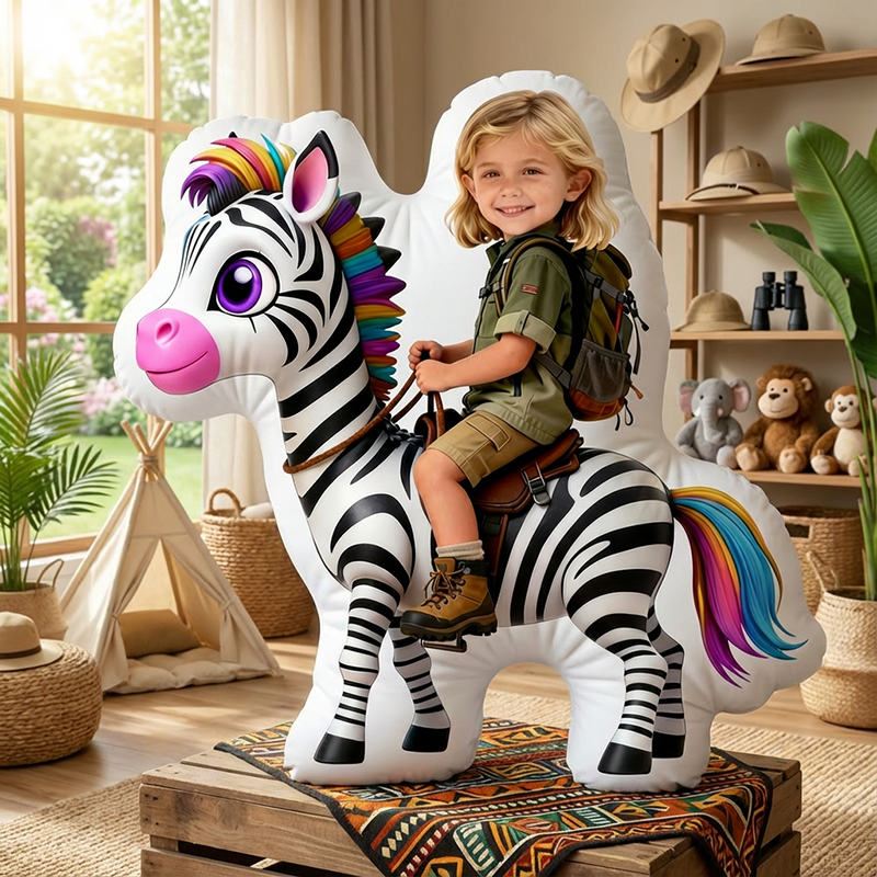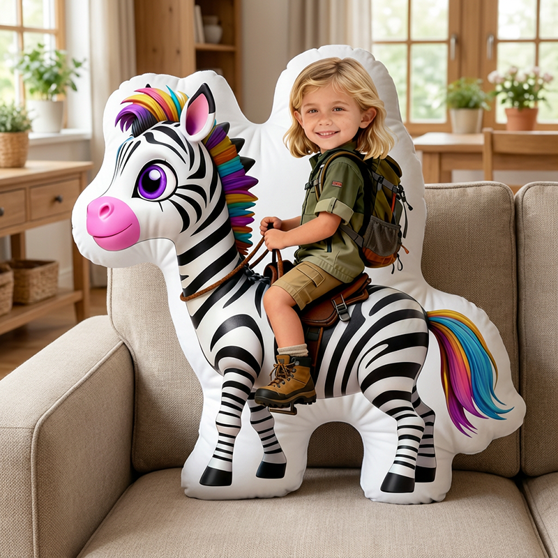 Personalized Face Portrait Pillow with Zebra Pattern Special Gift for Girl