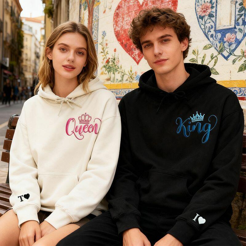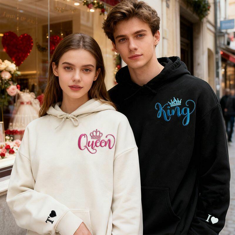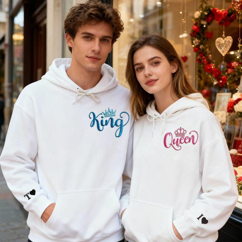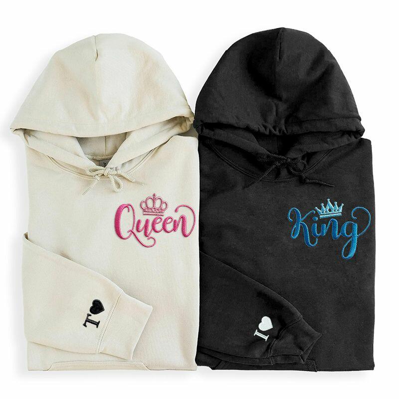 Personlig hoodie Broderad design med kung och drottningkrona Perfekt valentinsdaggåva för älskande