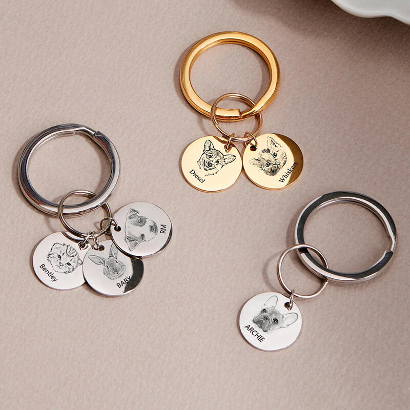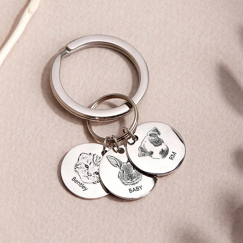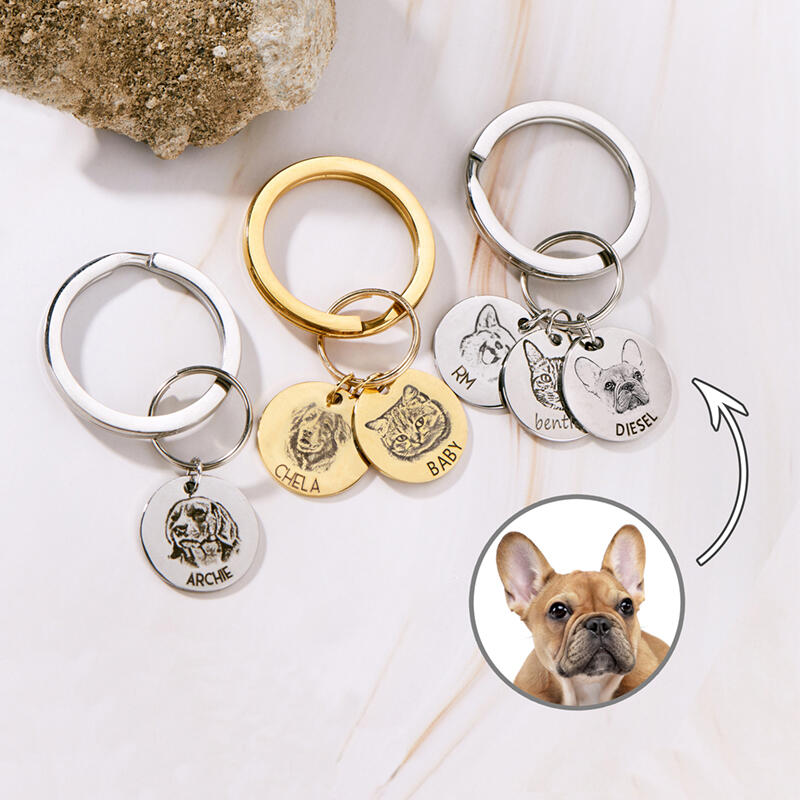 Nyckelring med personligt foto och namn på husdjur Unik gåva till husdjursälskare