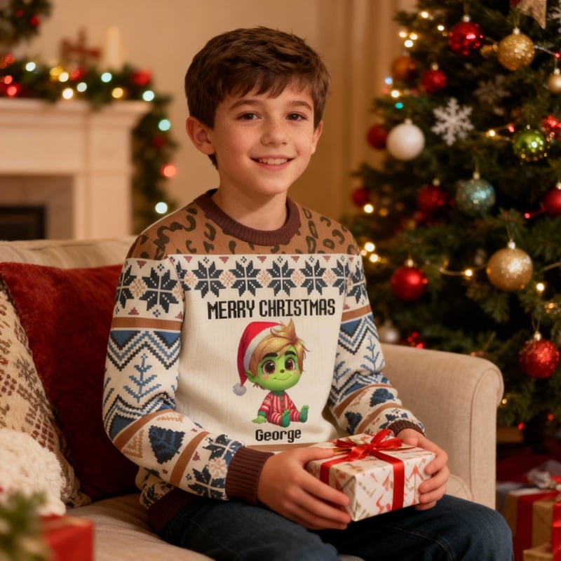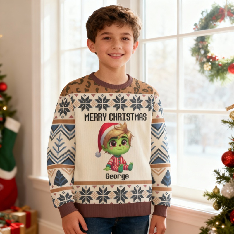 Personlig ful tröja för barn unisex med tecknad design julklapp för barn
