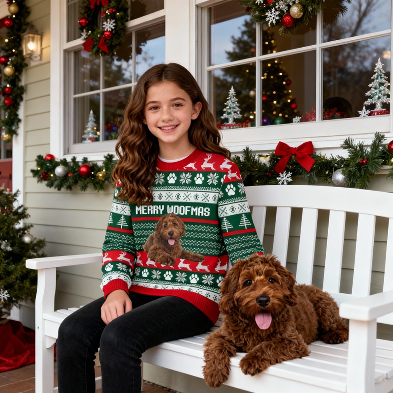Personlig ful tröja för barn unisex med eget foto tassavtryck perfekt julklapp för djurälskare
