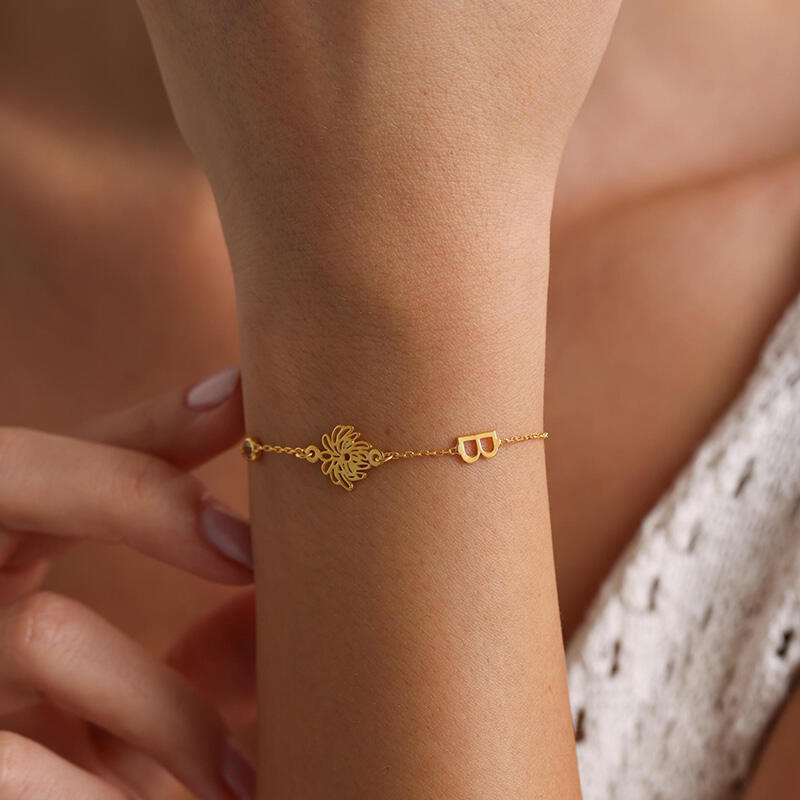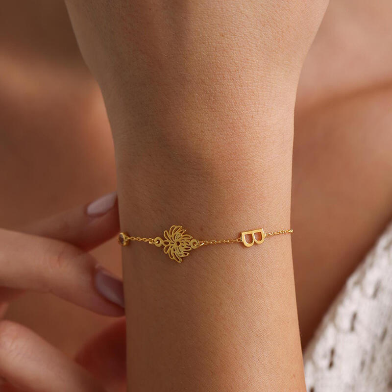 Personligt brevarmband med födelsedagsblommor och stenar Utsökt gåva till flickor