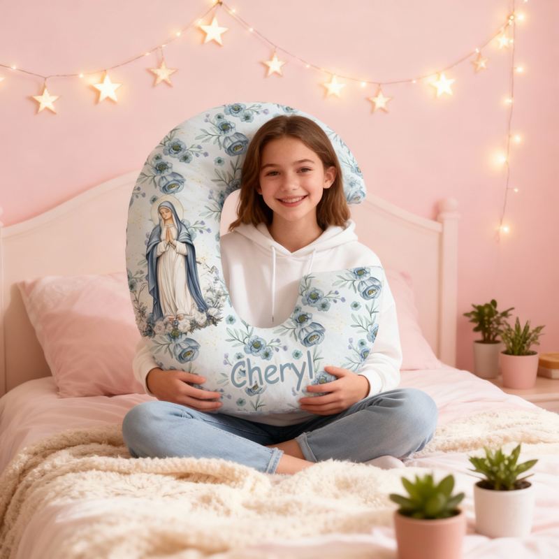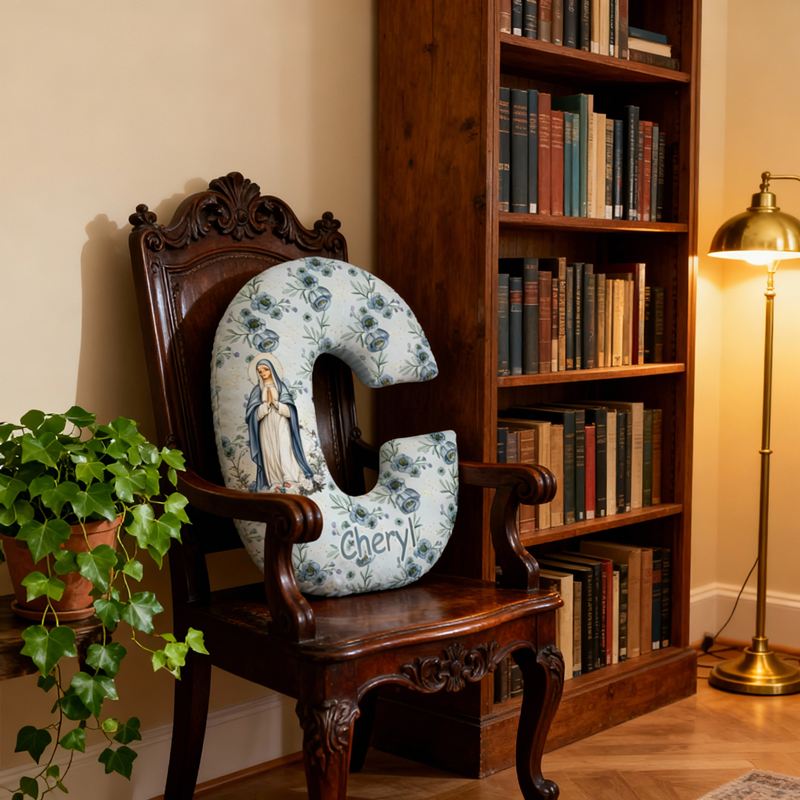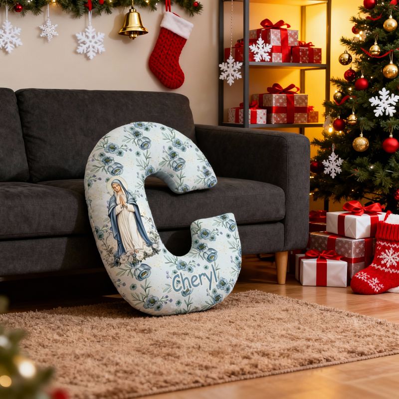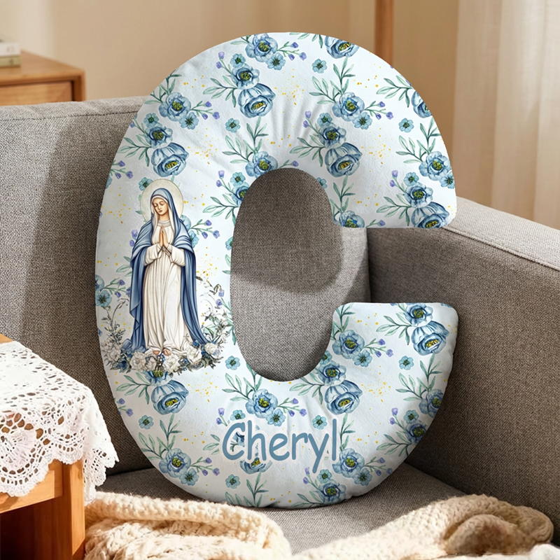 Personlig bokstavskudde Jungfru Maria Blommor Design Religiös present till hennes familj