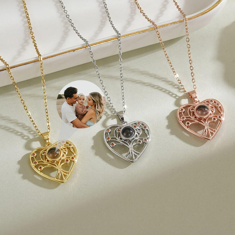 Personligt halsband med kärleksprojektionsbild med livets träd Utsökt gåva till mamma