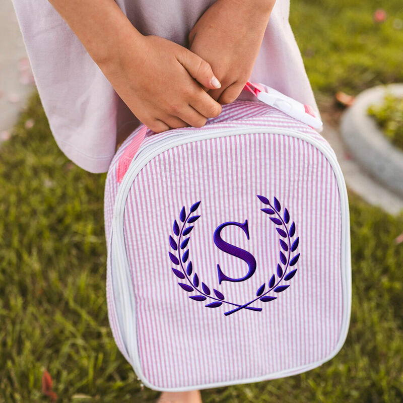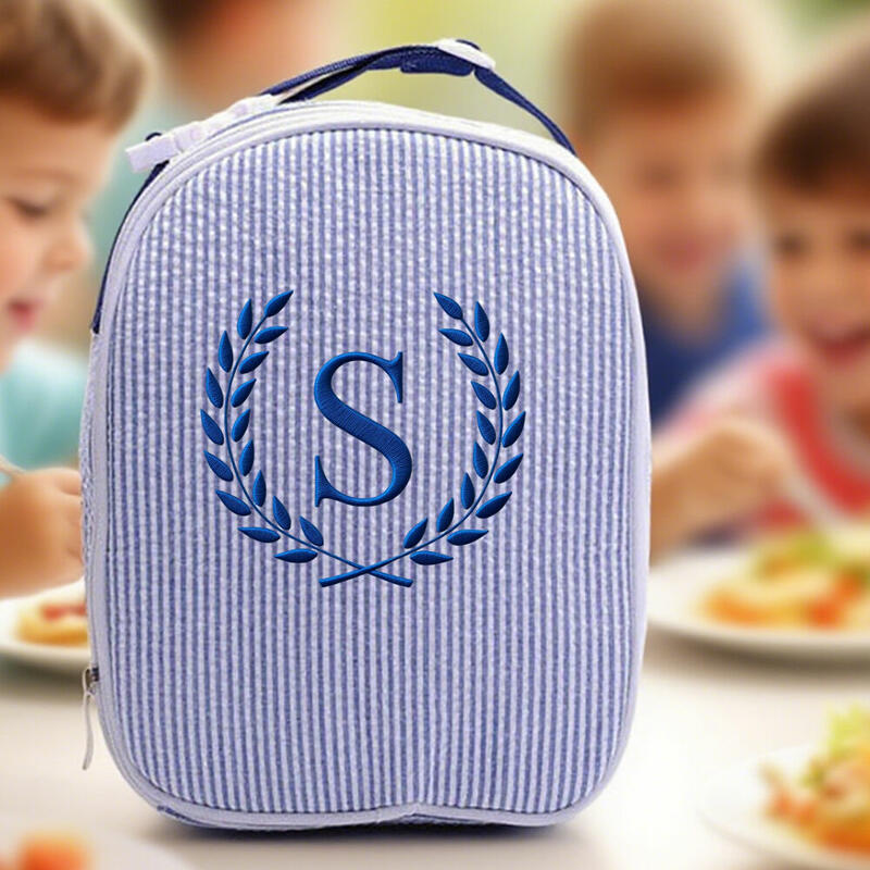 Personliga lunchväskor Handbroderad lunchväska med monogram Skolstartväska för barn