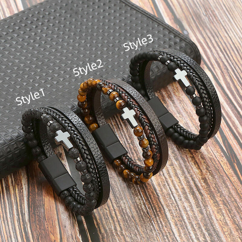 Personligt läderarmband med pärlor för män Snygg Alla hjärtans dag-present till honom