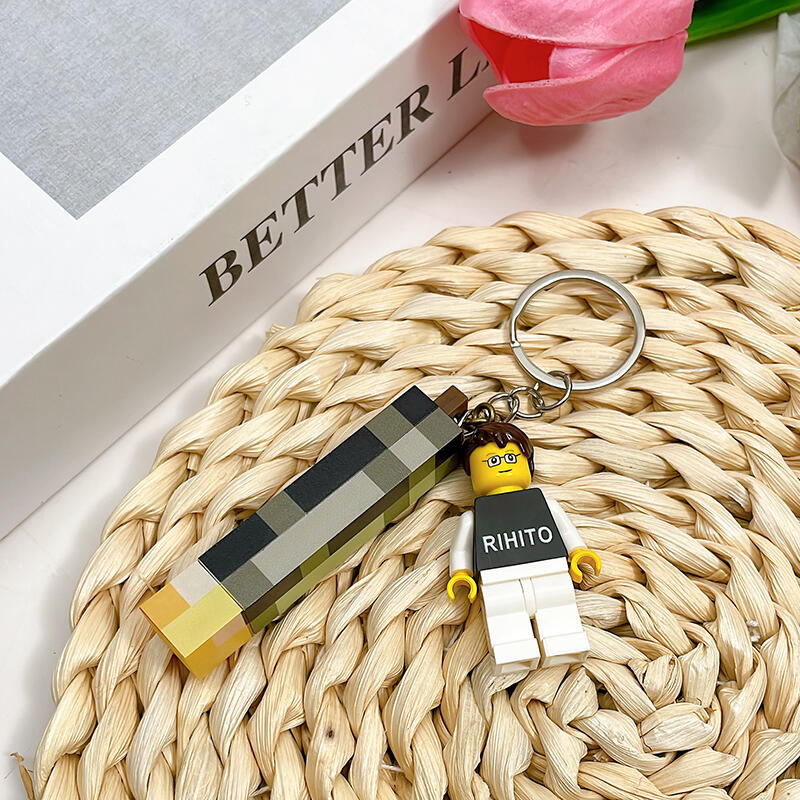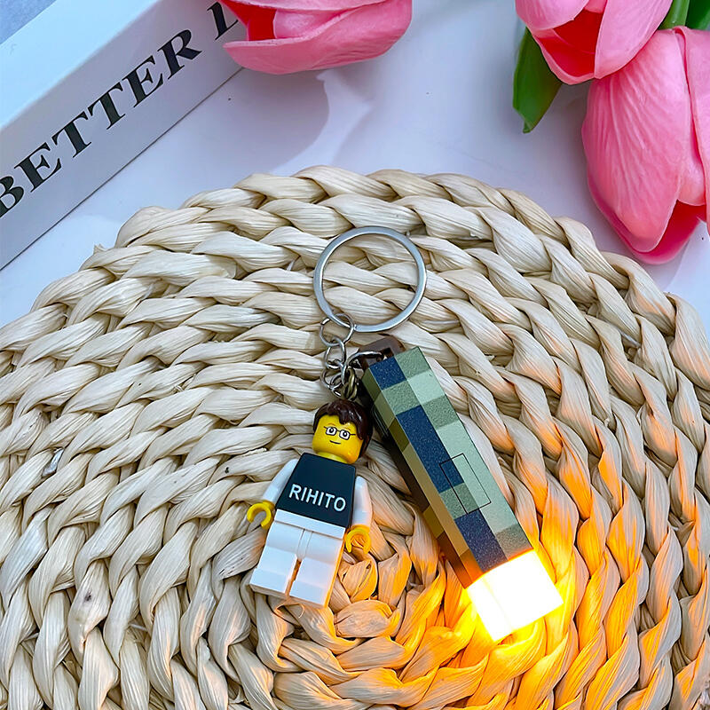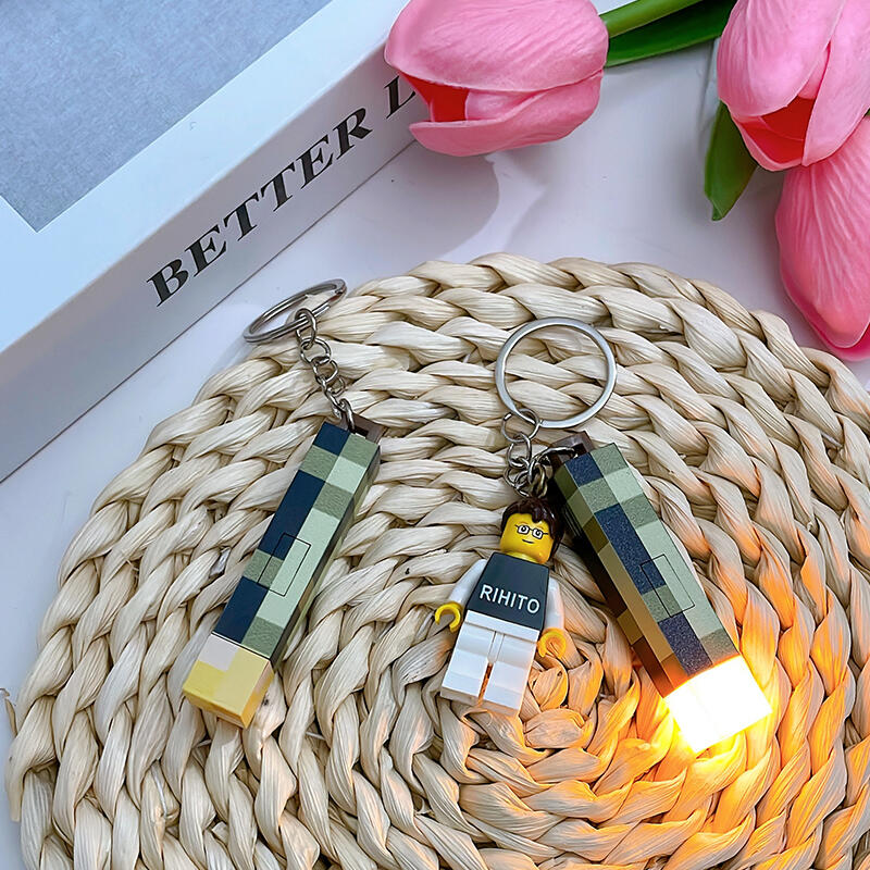 Personlig minifigurnyckelring med upplysta tillbehör Rolig present till honom