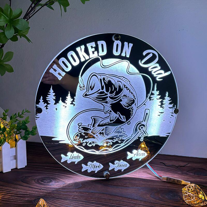 Personlig spegellampa med fiskmönster anpassningsbart namn present till fiskeentusiaster