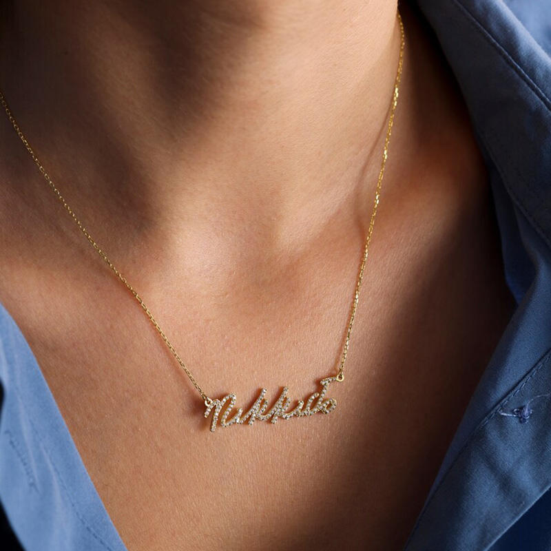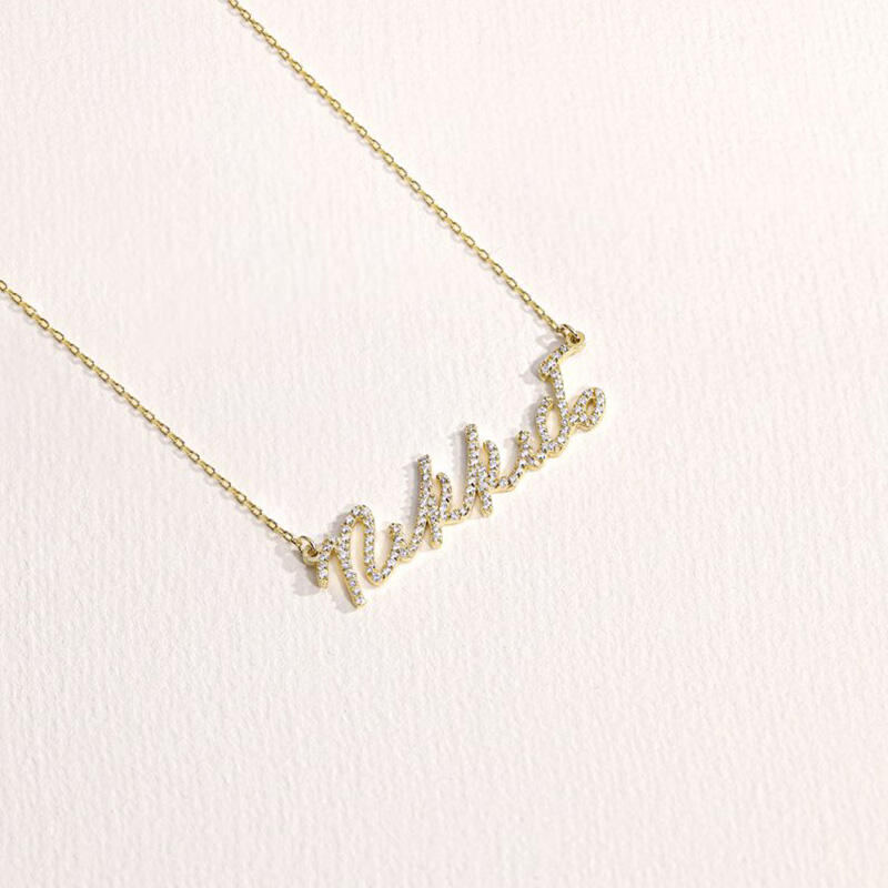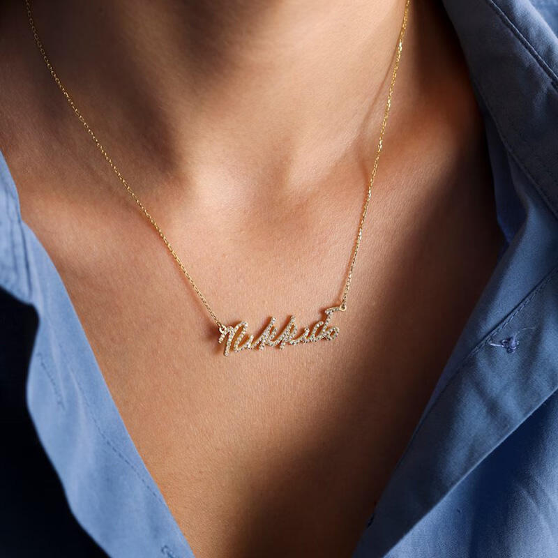 Personligt namnhalsband med diamanter Utsökt present till henne
