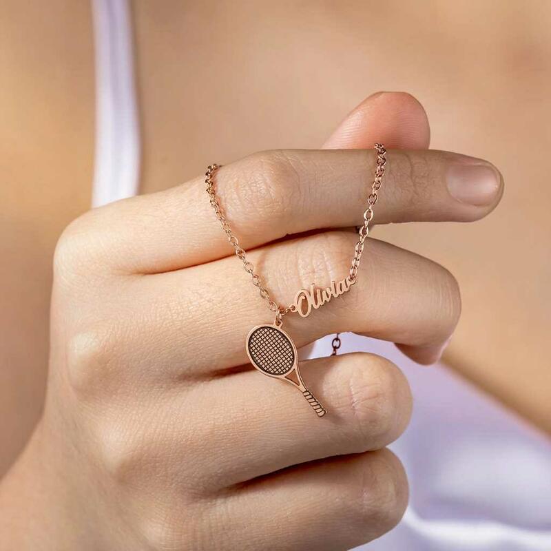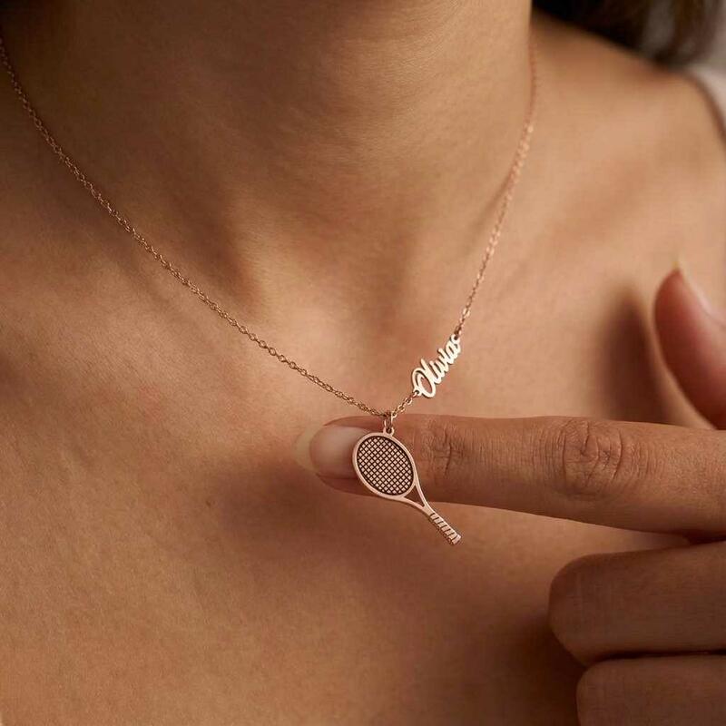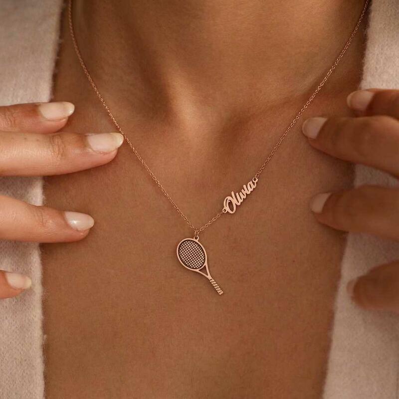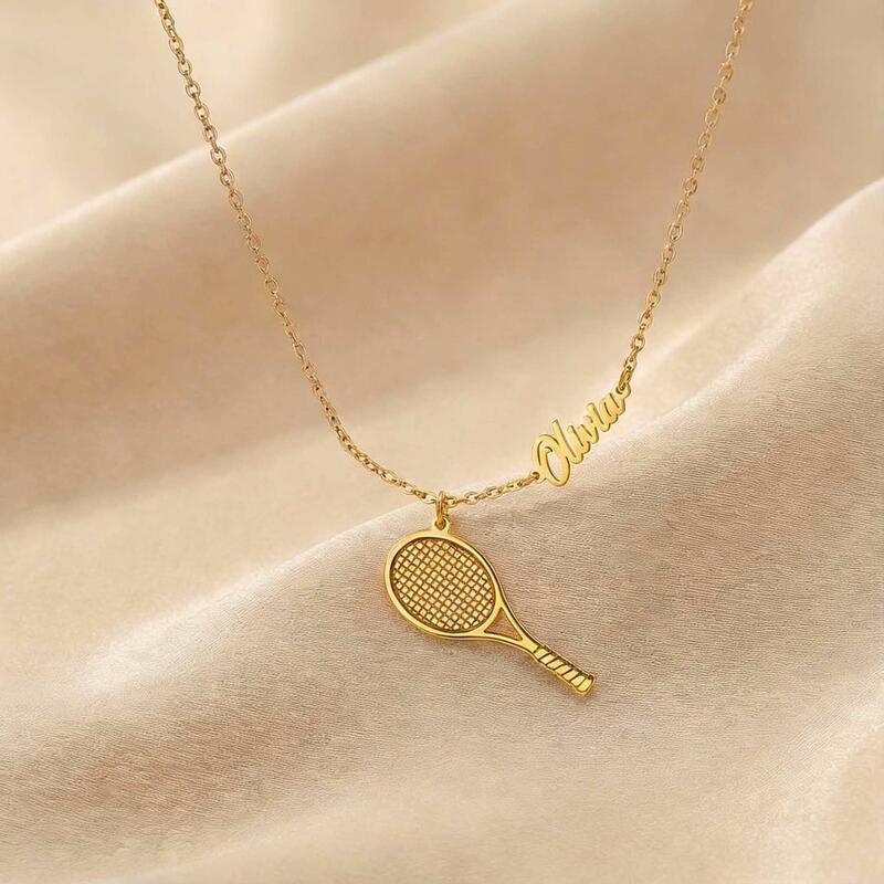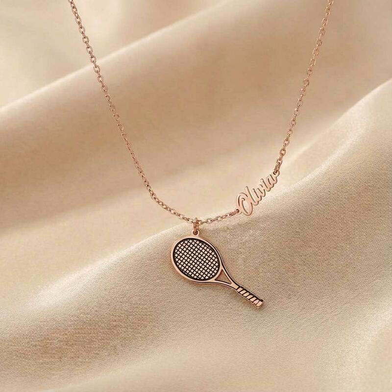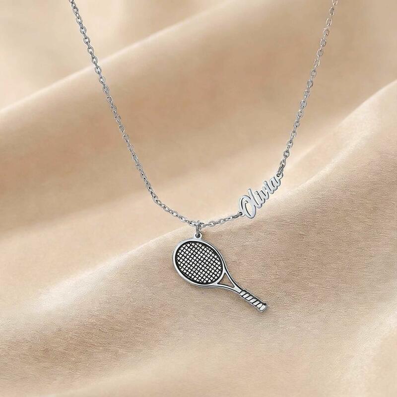 Personligt namnhalsband med tennisracket Rolig present till sportentusiaster