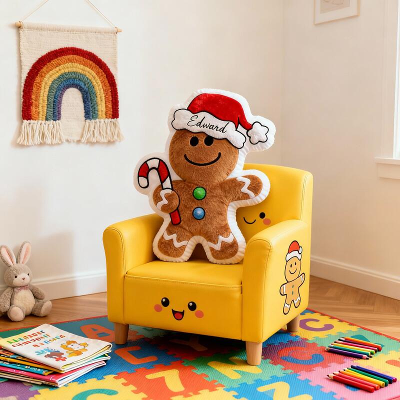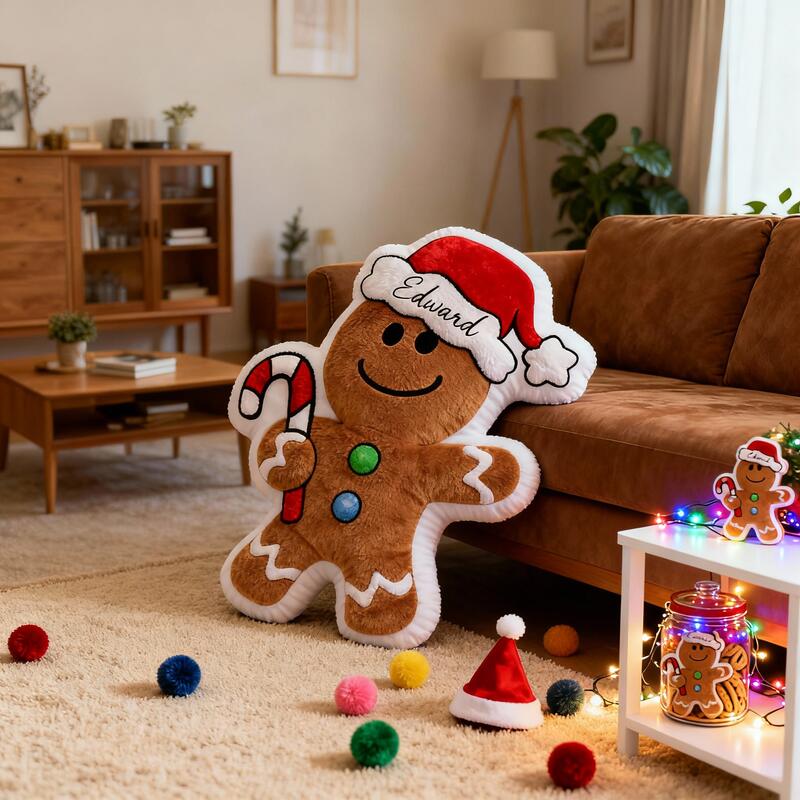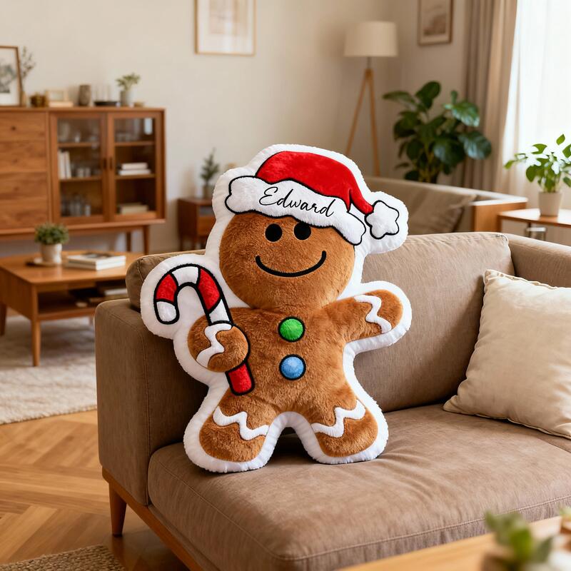 Personlig kudde med eget namn och polkagris-motiv kreativ julklapp