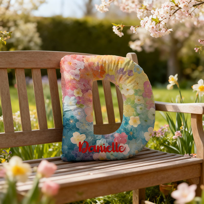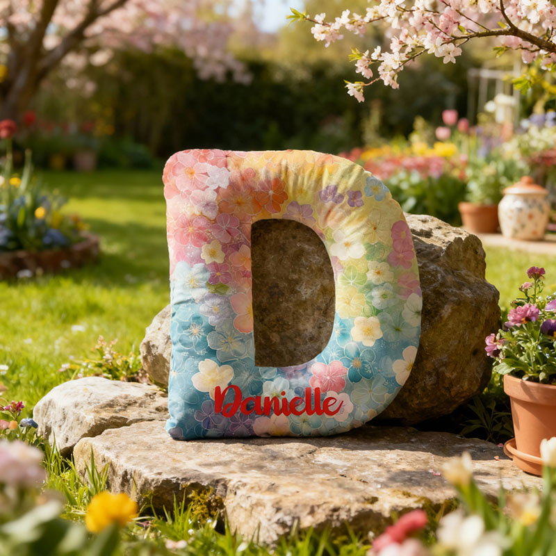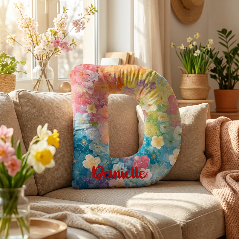 Kudde med personligt namn och färgglada blommönster Värdefull present till familjen