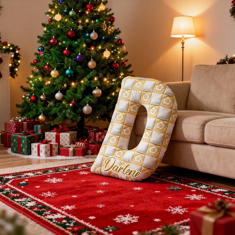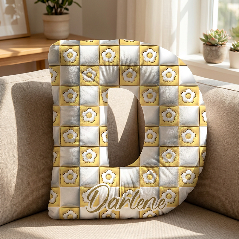 Personlig namnkudde med vitt blommönster enkel present till barn