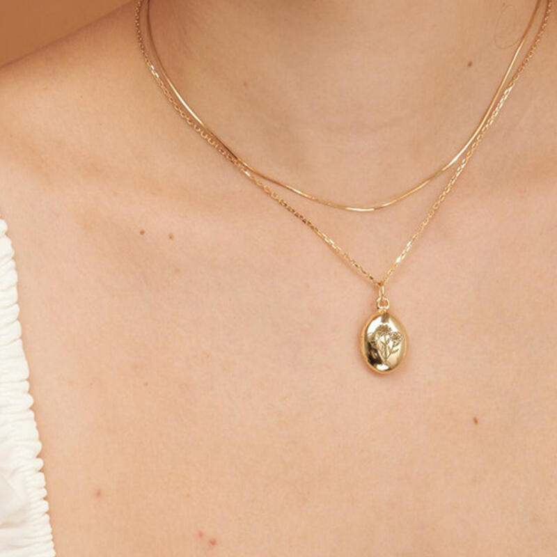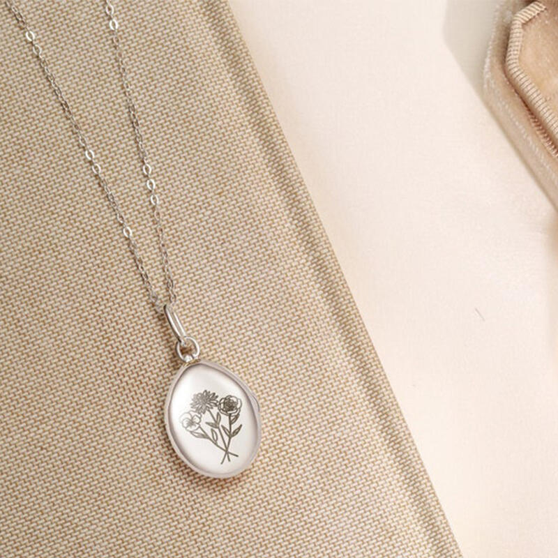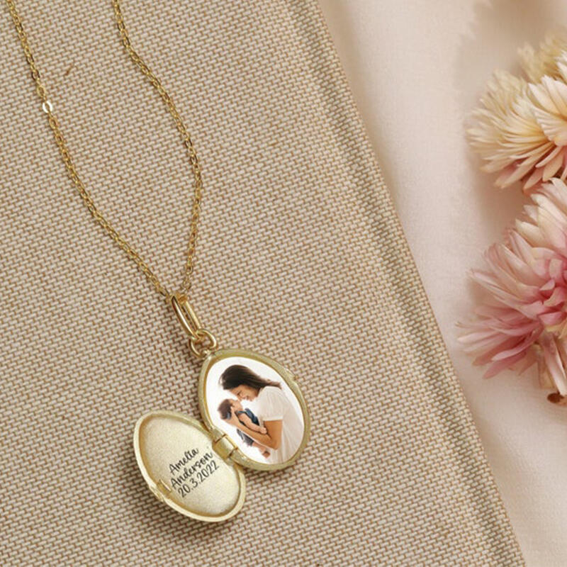 Personligt ovalt fotohalsband med text Romantisk present till mamma
