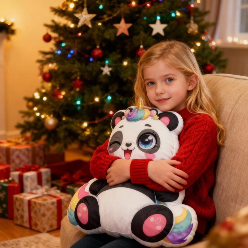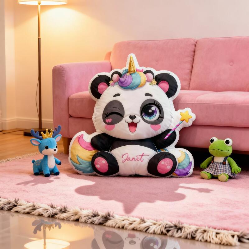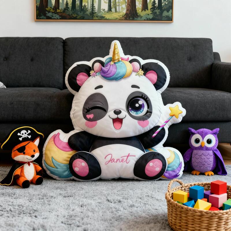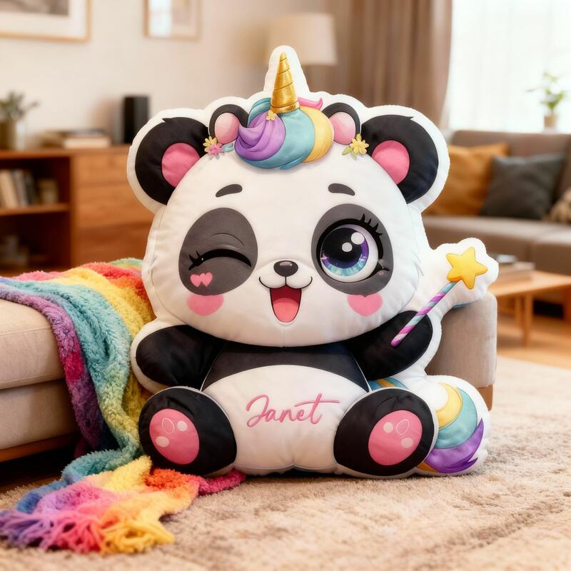 Personlig pandakudde med eget namn Kudd med tecknad enhörning som motiv Present till barn