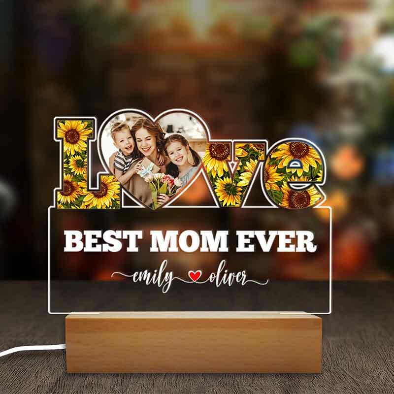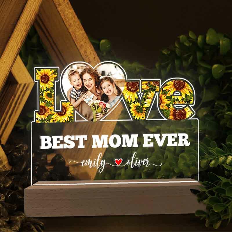 Personligt bildnattljus med solrosor Unik present för bästa mamma
