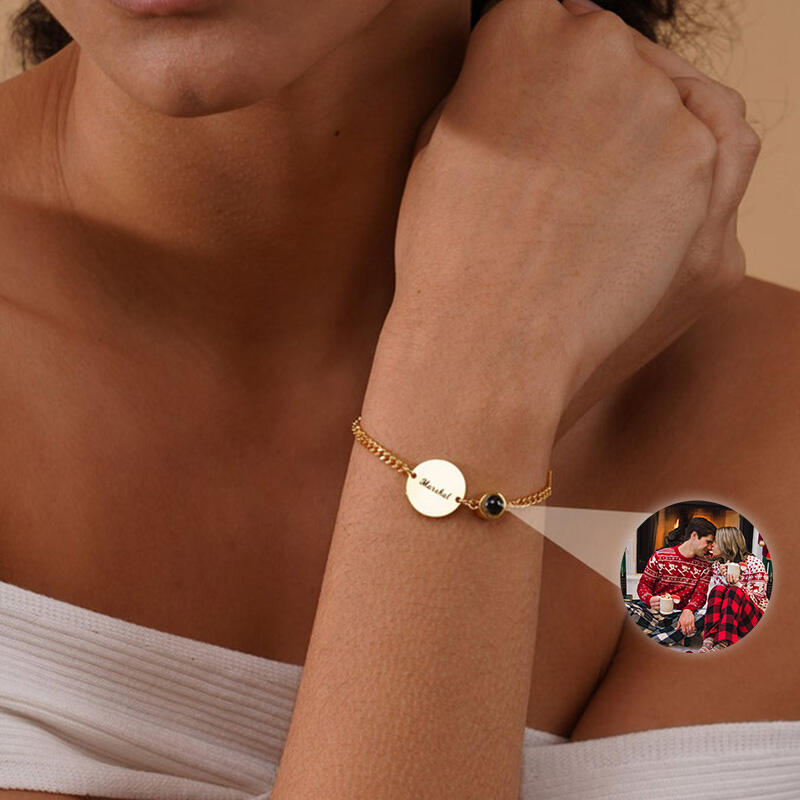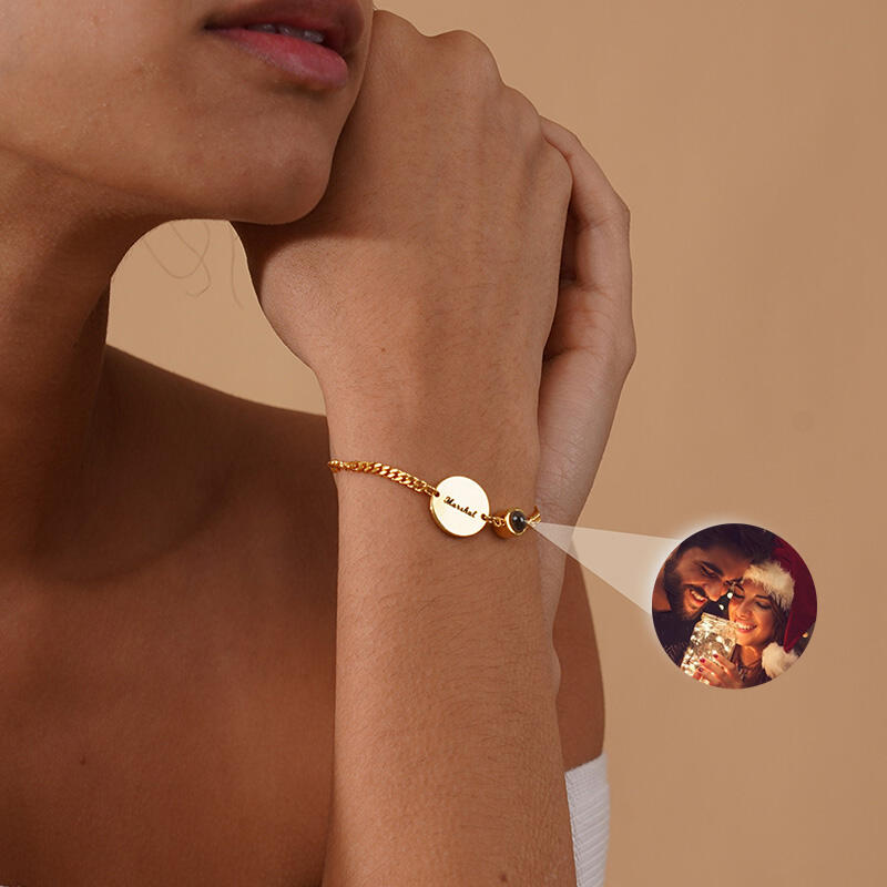 Personligt projicerat bildarmband med text Enkel gåva till alla hjärtans dag