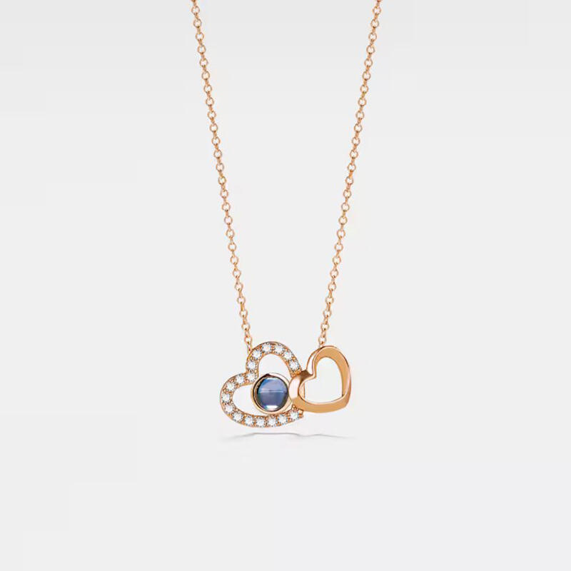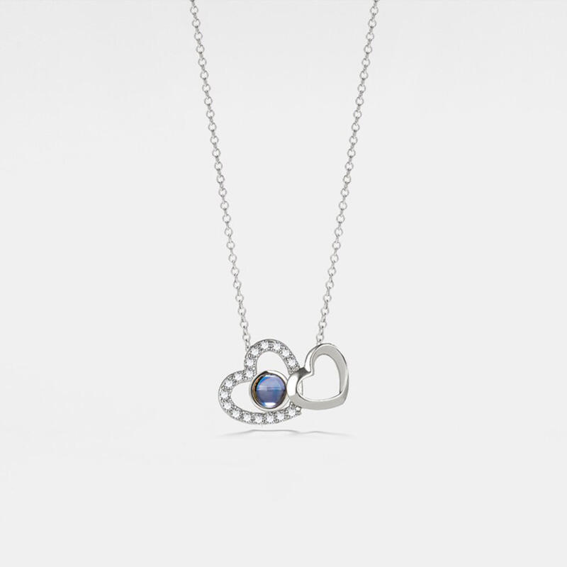 Halsband med fotoprojektion Dubbelhjärtformad med diamanter Julklapp till flickvän