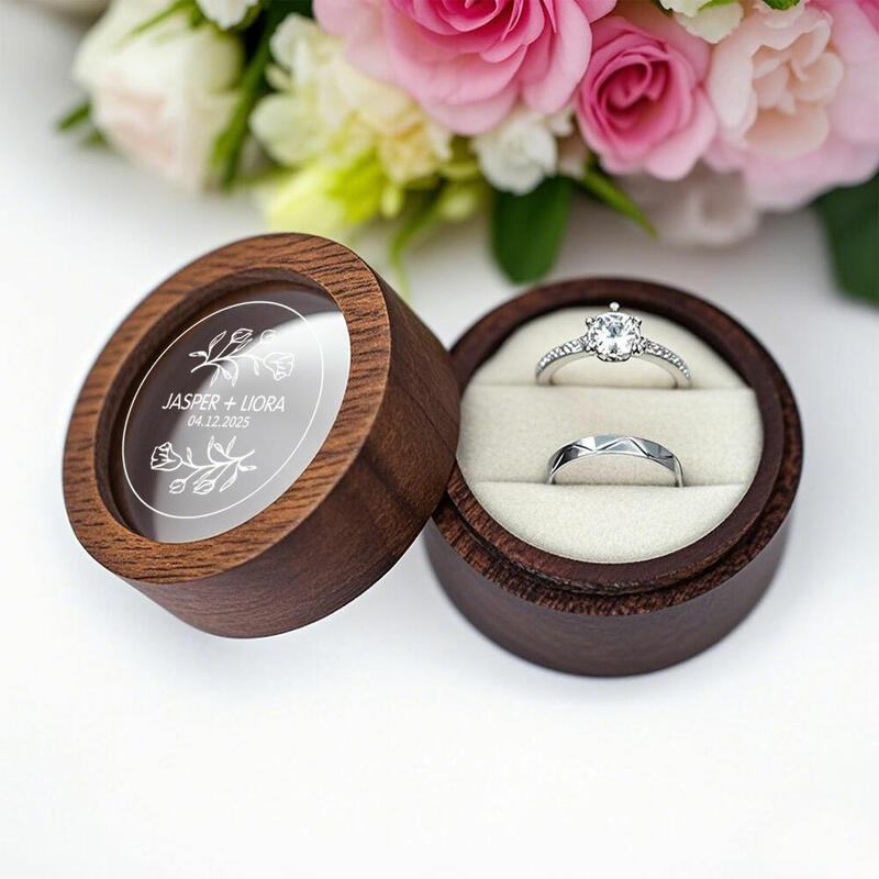 Personligt ringskrin med rosmönster Smyckeskrin i valnöt Jubileumspresent till henne