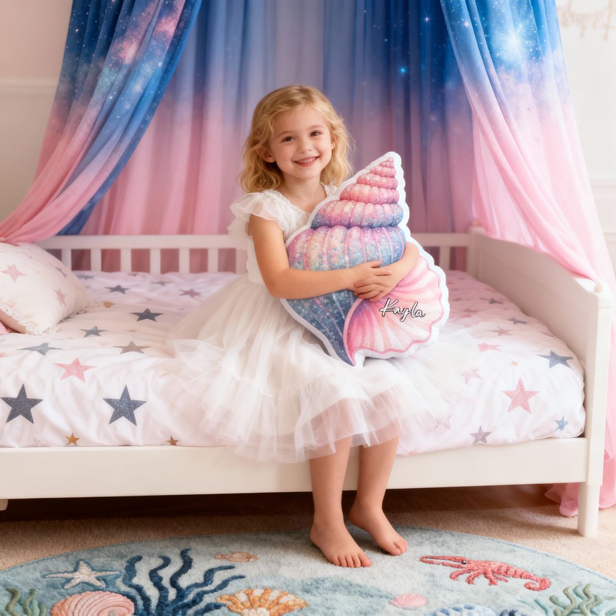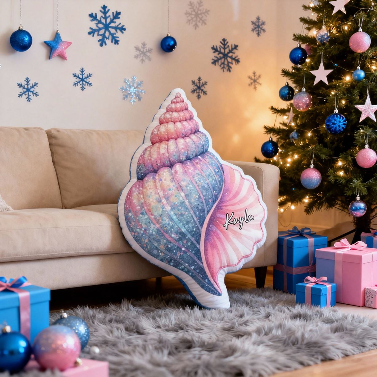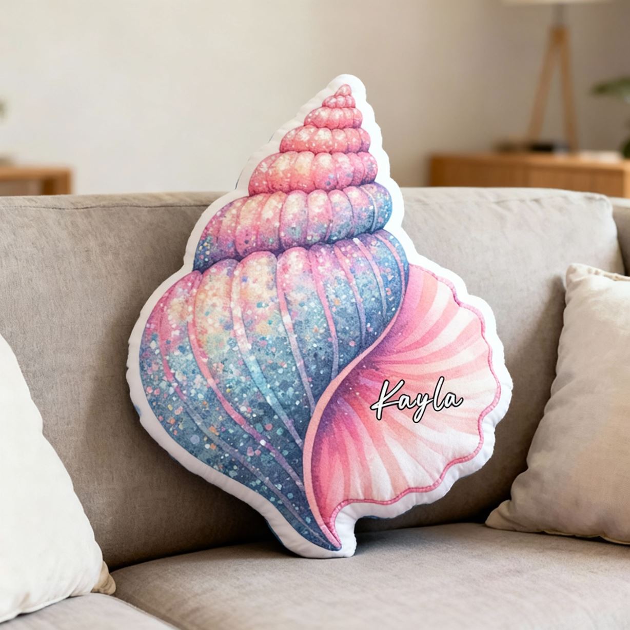 Personliga kuddar med snäckskal-motiv Kudd med tecknat motiv Julklapp för barn