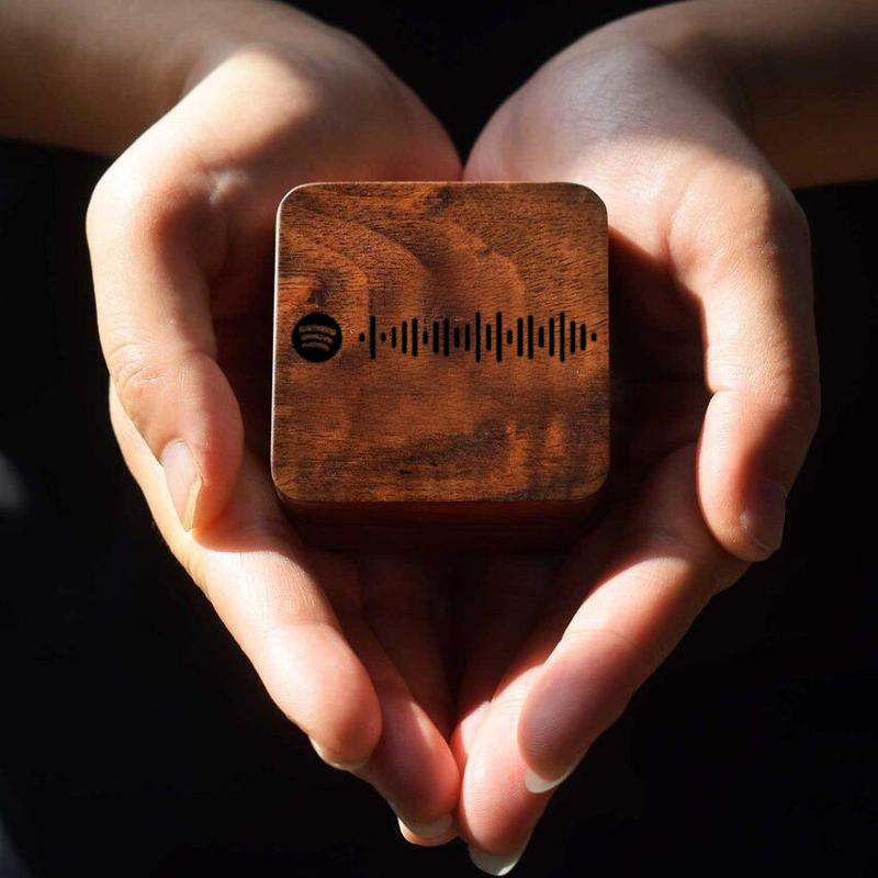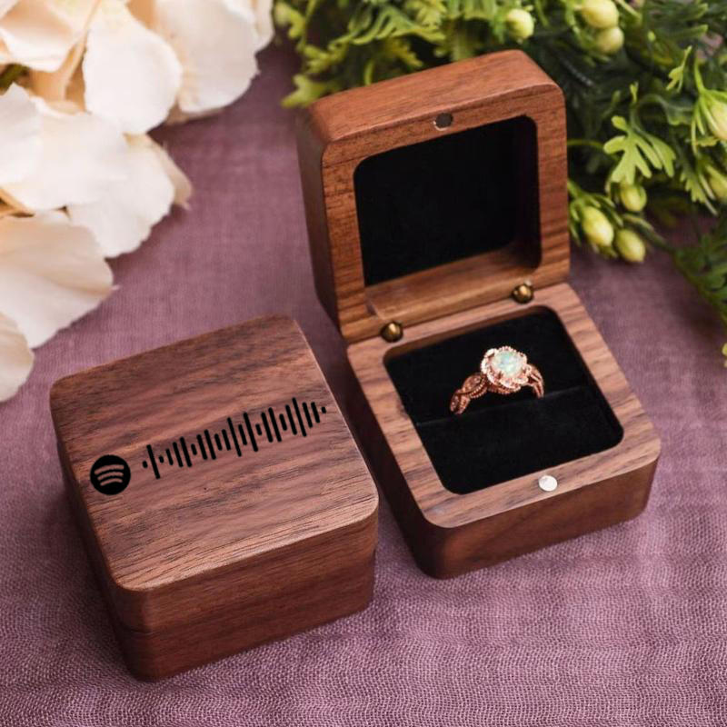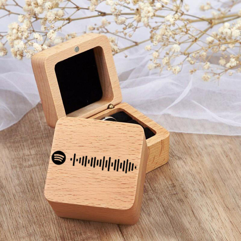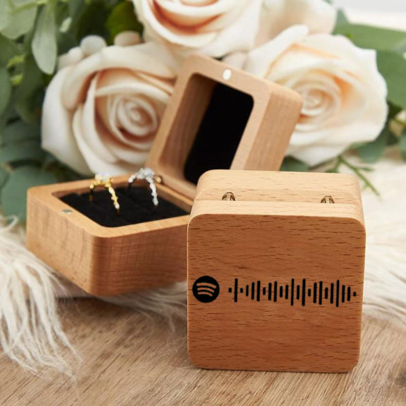 Ringask med personligt namn och Spotify-kod Värdefull present till bröllopet