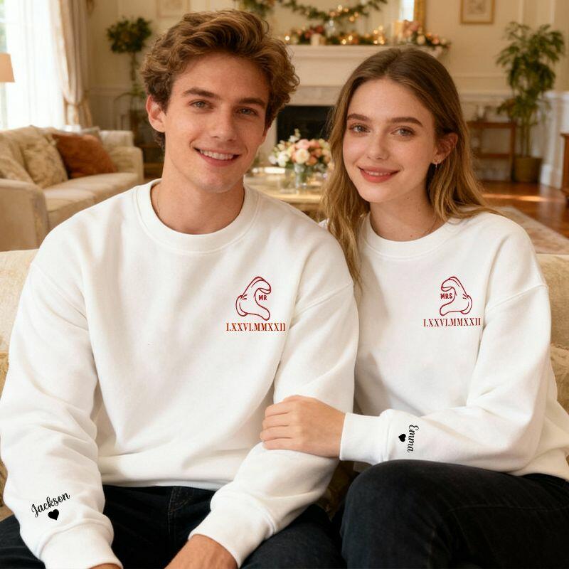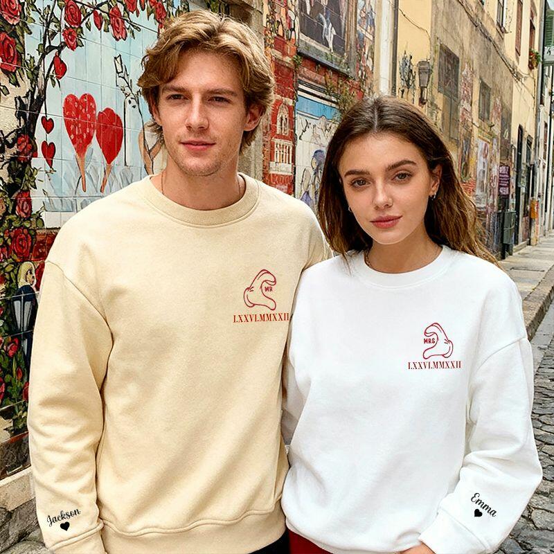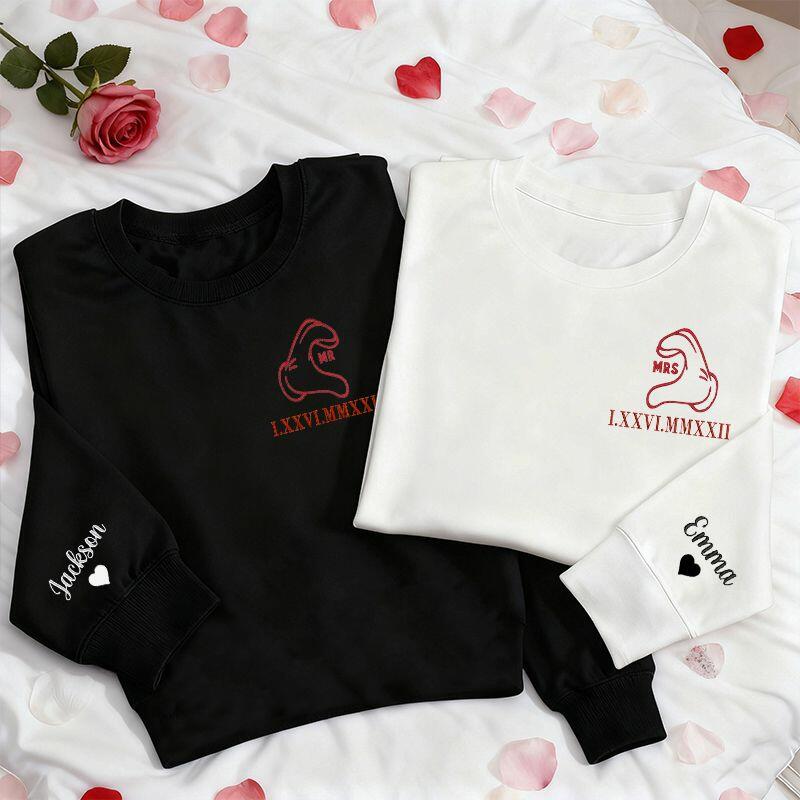 Personlig tröja med broderat handhjärta och anpassad romersk siffra för datum Present till älskandes årsdag
