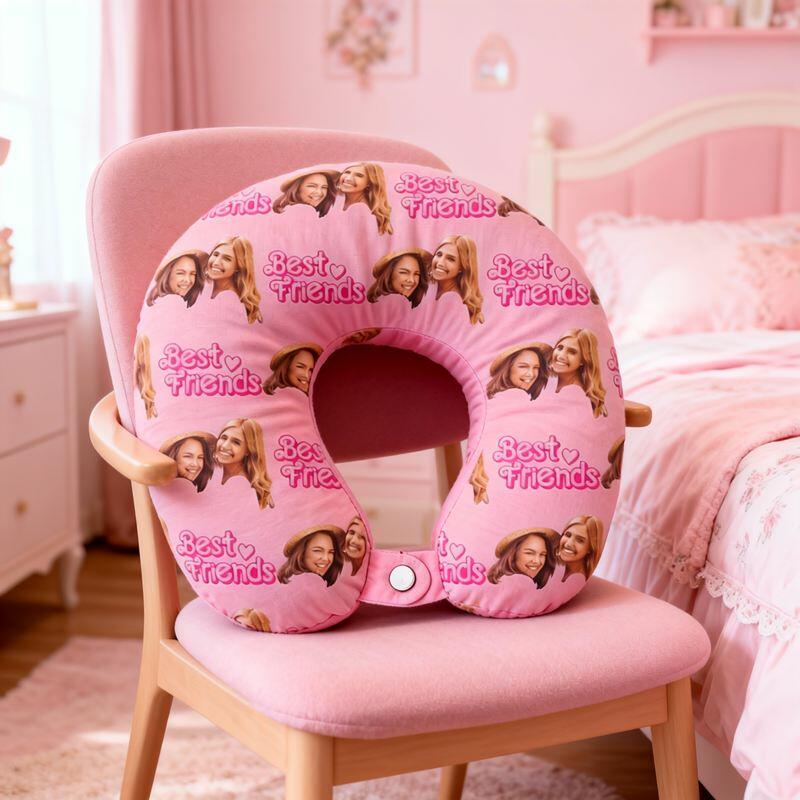 Personlig U-formad nackkudde med eget foto bästa vänner söt rosa design present till bästa vänner