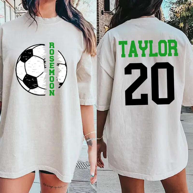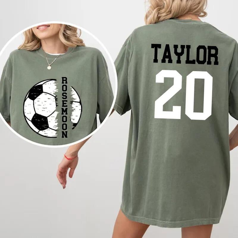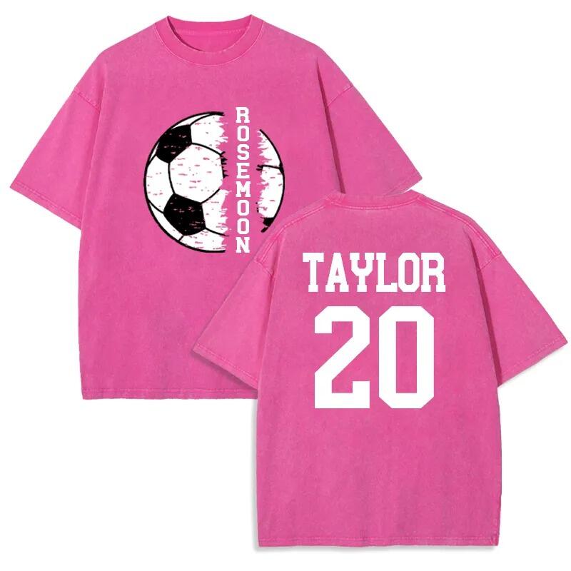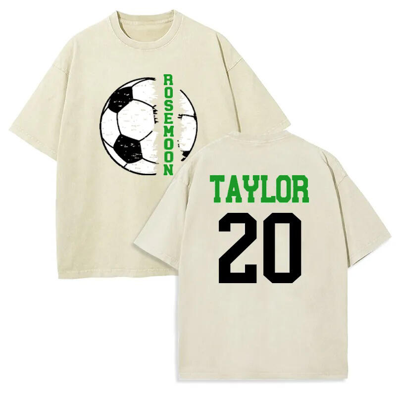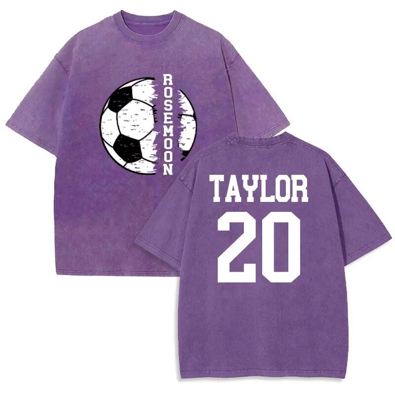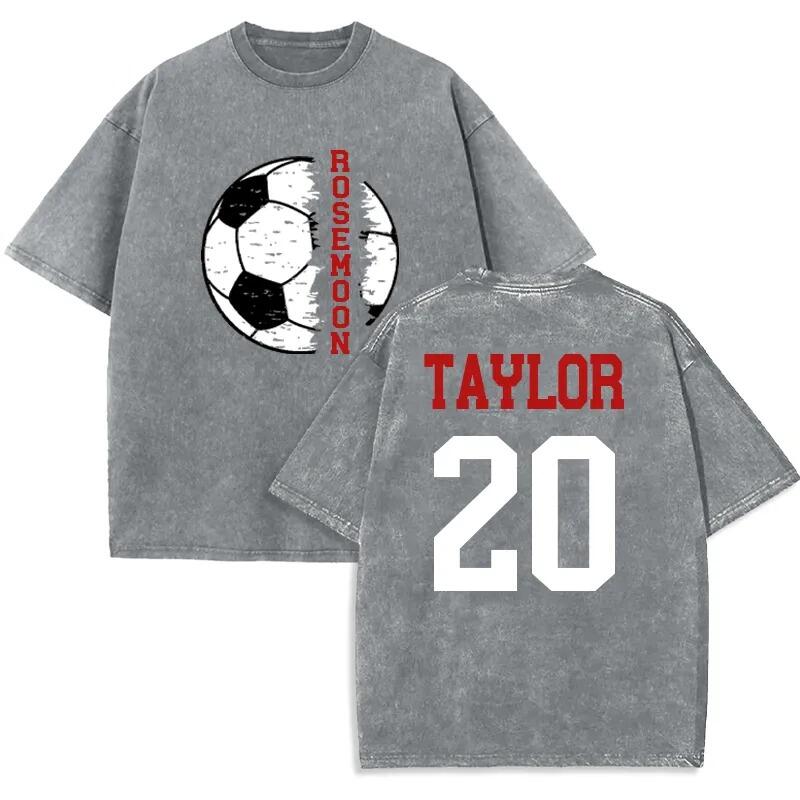 Personlig tvättad T-shirt Fotbollslag Anpassat namn och tröjnummer Perfekt present för fotbollälskare