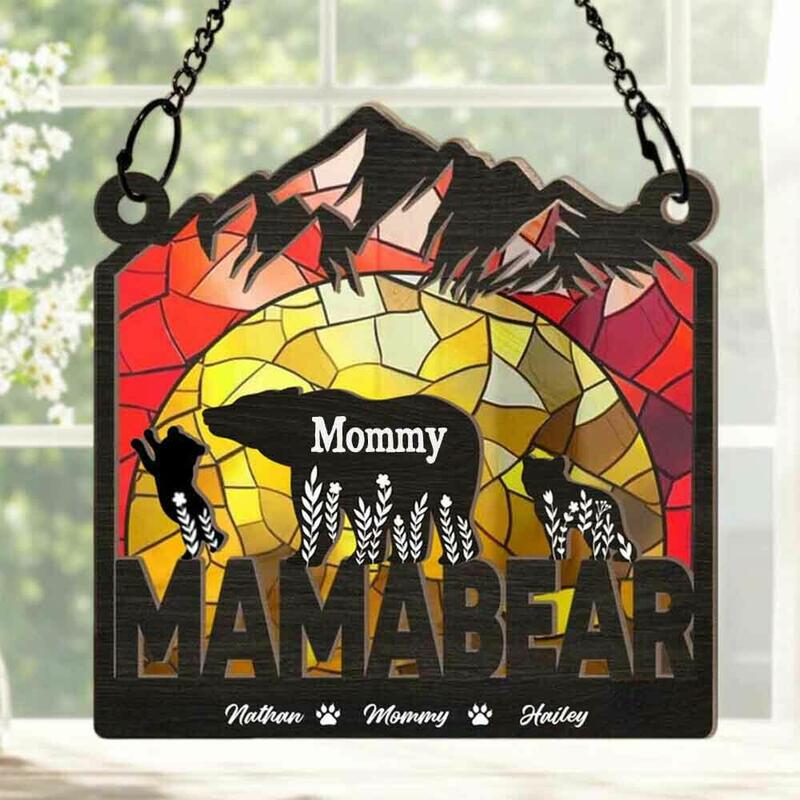 Personligt fönsterdekoration Hängande solfångare prydnad Mamabear Mors dag gåvor till mamma
